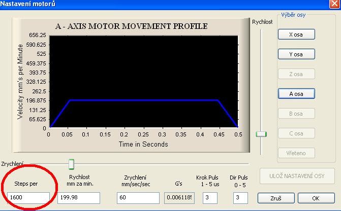 Pořád nechápu jak nastavit osu pro jedno otočení, na desce mám nastaveno 8x, takže mám zadat 8x200=1600 na otáčku?
