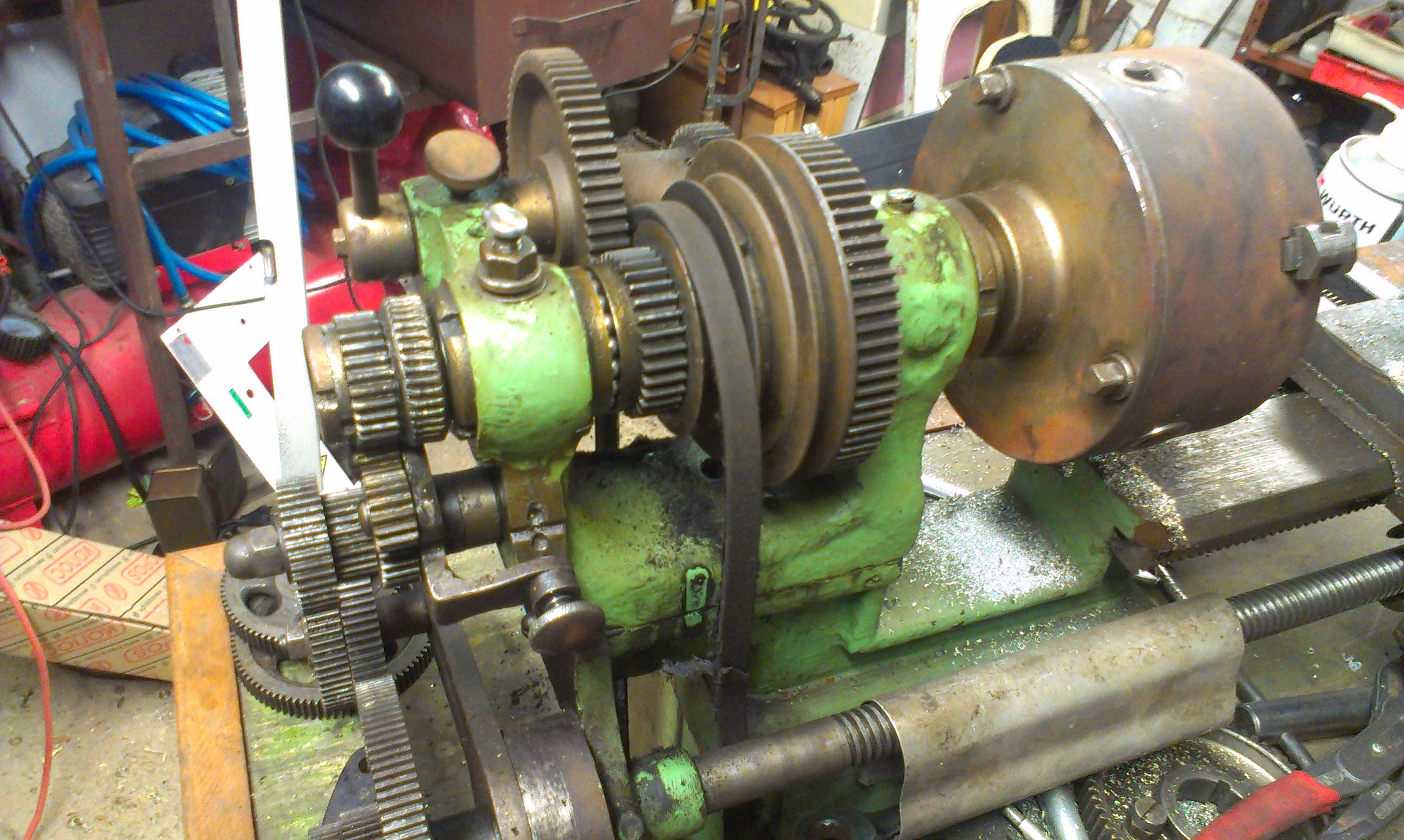 pán ho nakonec pustil za pro mě přijatelnou cenu lehce nad 10 000 Kč. Nevím jestli jsem udělal dobře s nákupem zrovna tohoto stroje, protože jsem opravdu začátečník a tohle je dědeček, ale když jsem si pročítal toto forum, tak než kupovat a rozčilovat se nad nějakou čínou z druhé ruky za 15000, tak raději šáhnout po osvědčené kvalitě. Navíc větší soustruh bych do dílny dal jen už opravdu stěží. Působí velice solidním dojmem, všechno drží, nikde nic nekvedlá, ale ještě dávám do kupy motor, takže jsem s ním ještě nepracoval. Zuby na kole opravit nenechal, ale k soustruhu je opravdu obrovské množství příslušenství, nože, měřidla, vrtáky, frézy, různá udělátka spolu s několika náhradními ozubenými koly. Nevím, jestli ten strojní posuv budu používat, takže to zatím neřeším. Byl jste také potenciální kupce?