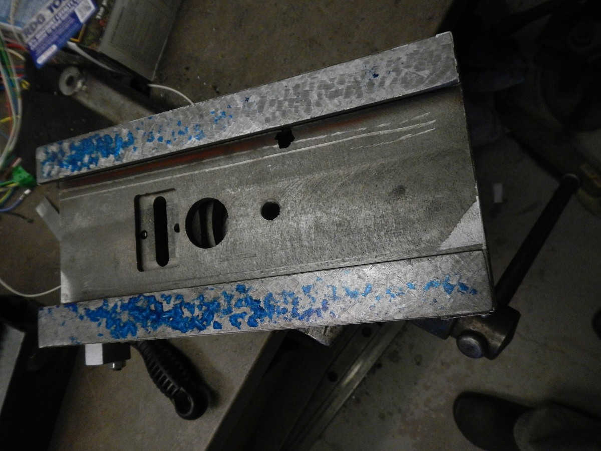 Ale základna byl jinší oříšek, hluboké stopy po freze (viditelné ještě na okrajích, tam jsem to moc neřešil, je to ve vzduchu) zde pilník byl slabý, jedno dvě škrábnutí a byl bez ostří. Dokonce ani destička se dlouho nechytala. Nakonec to vyřešila hrana diamantového brousku.