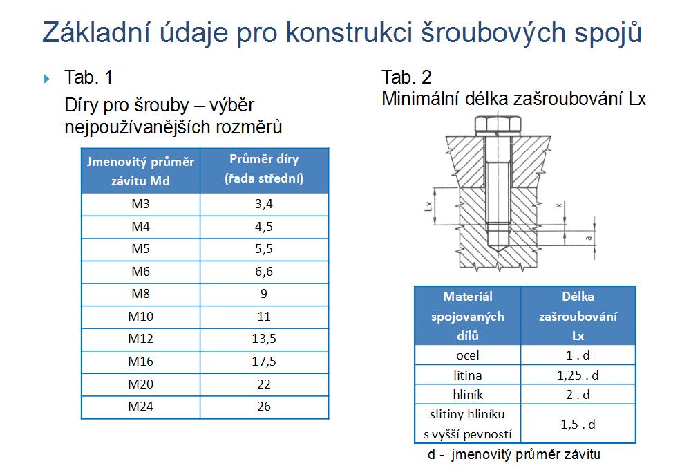 Tedy šroub to udrží většinou vždy, pevnost je dána sílou materiálu a z ní vypadne maximální použitelný závit.