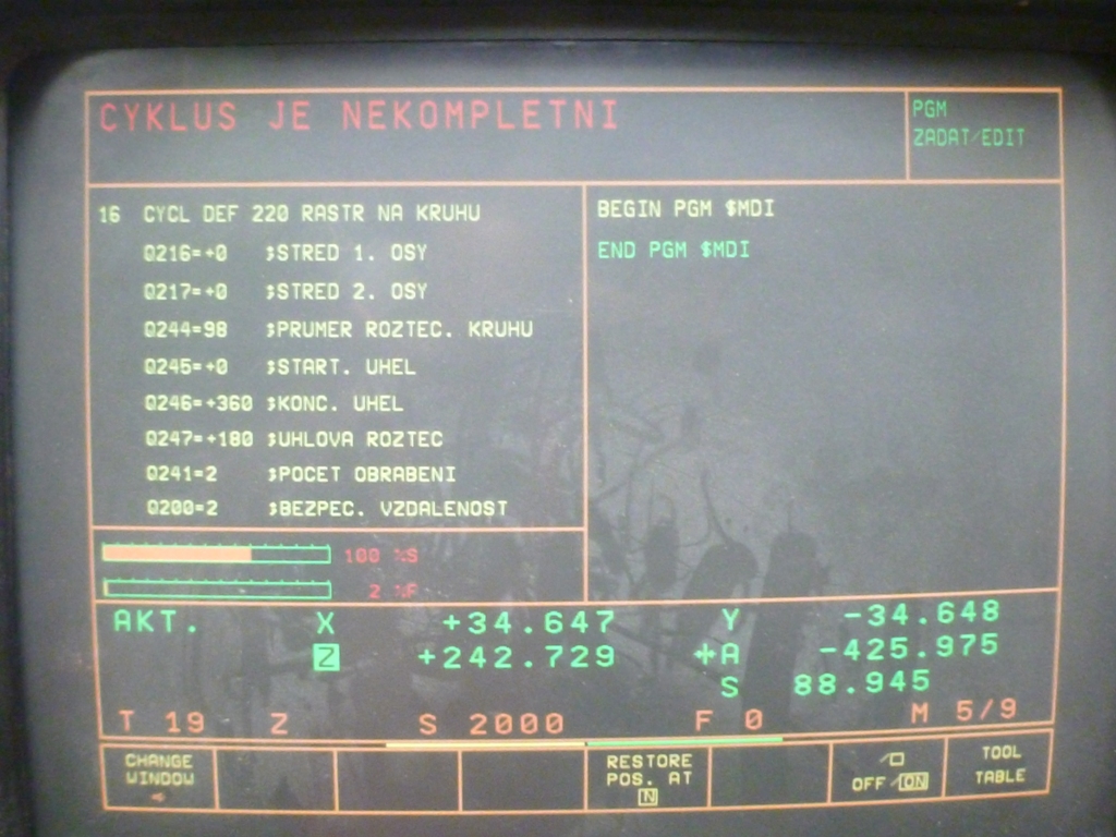 nastal mi zajímavý problém - na TNC 426 mi z ničeho nic přestaly chodit cykly s číslem přes 200, specíálně rastr na kružnici (220) a aby to nebylo tak jednoduchý, v některých případech to jde, v tom samém PGM o pár řádků dál už ne