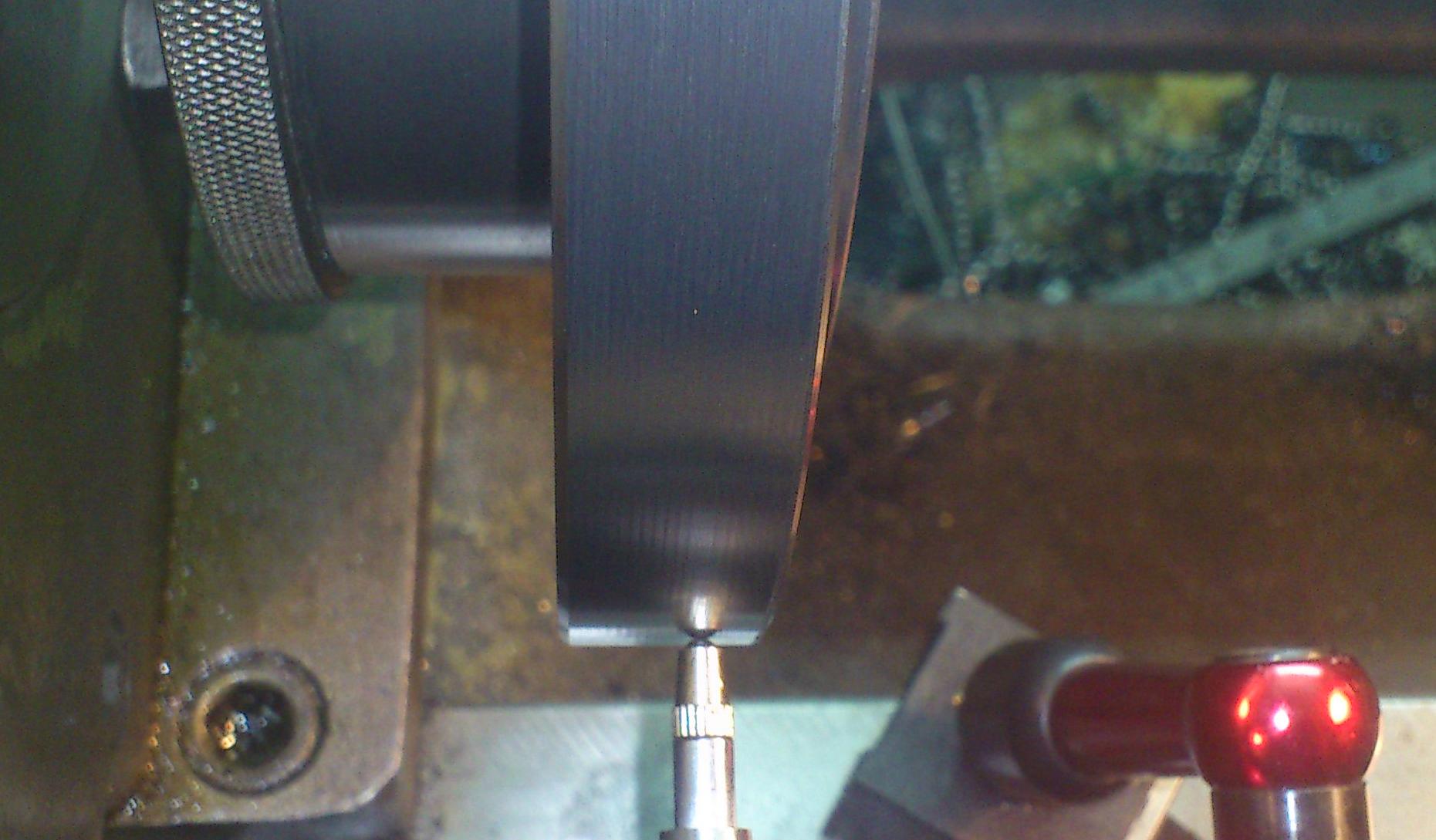 ... po upnutí přebroušené mezi-příruby jsem osoustružil její vnější Ø200 a boční dosedací plochu - vše s překvapivě slušným povrchem a s házivostí 1µm po soustružení *což mi přijde jako celkem slušný výsledek