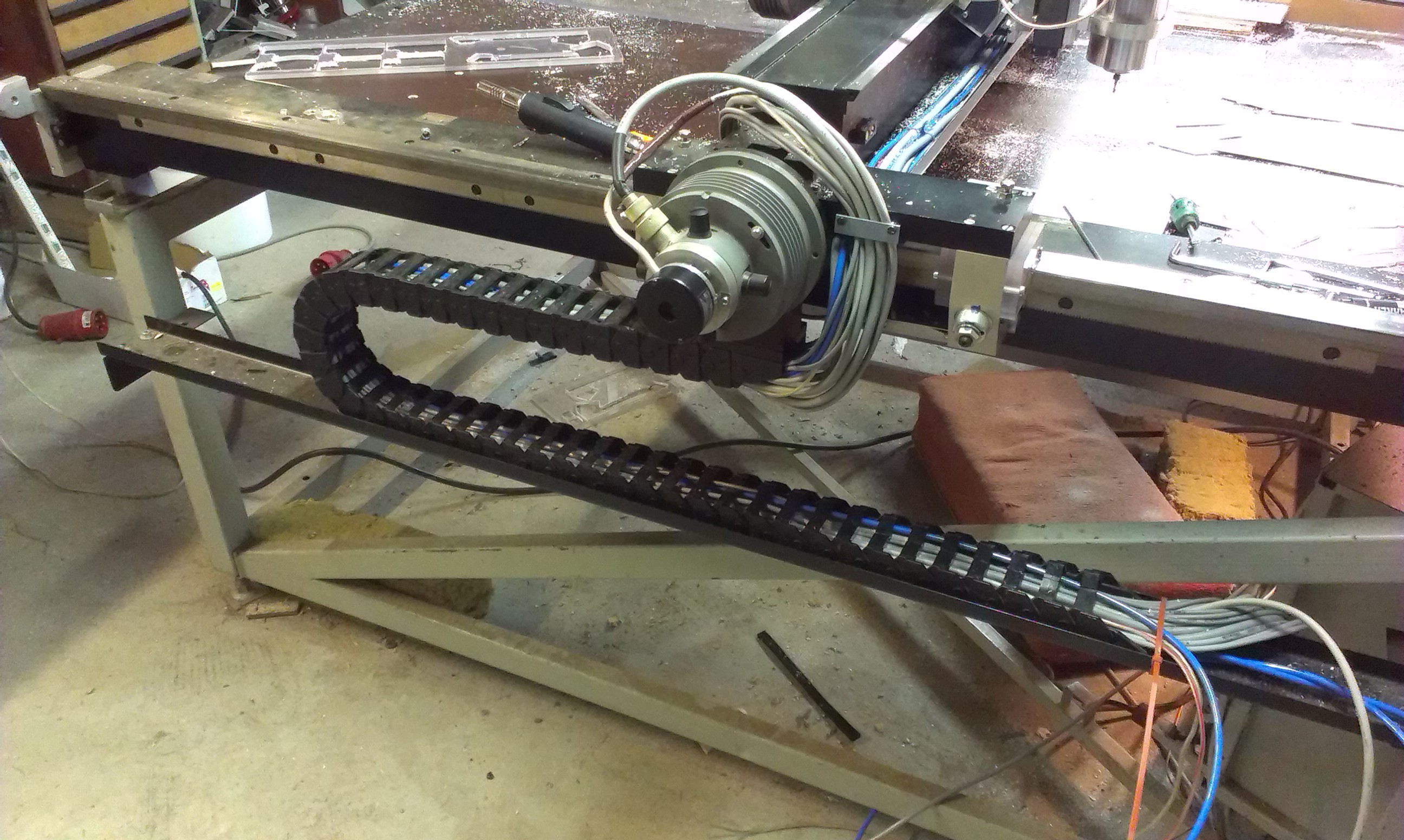 ktery jsem nahradil opravdovym energo retezem a to predevsim kvuli mnozstvi stinenych kabelu a taky kvuli nutnosti pridat 3 hadicky. jednu na vzduch pro ATC a dve pro vodu na chlazeni.