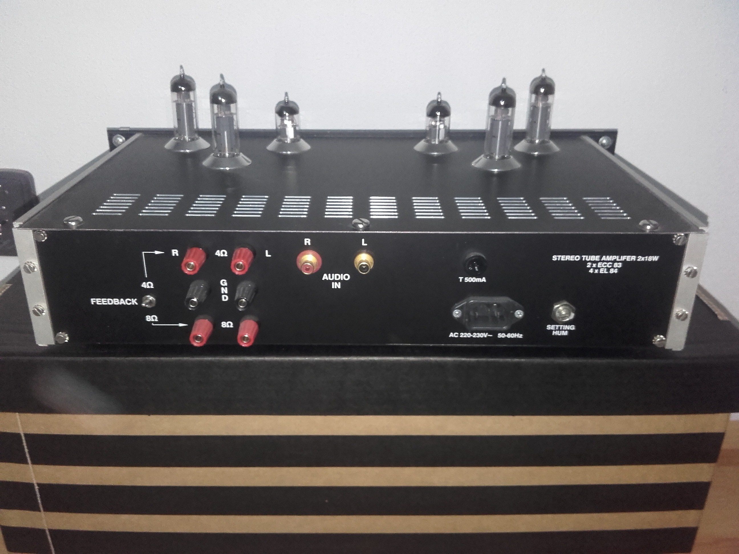 S EL84, ECC83 inventor a budič, klasika třída AB. Na 34 nebyly chechtáky a ty výstupáky stojí taky šišku.