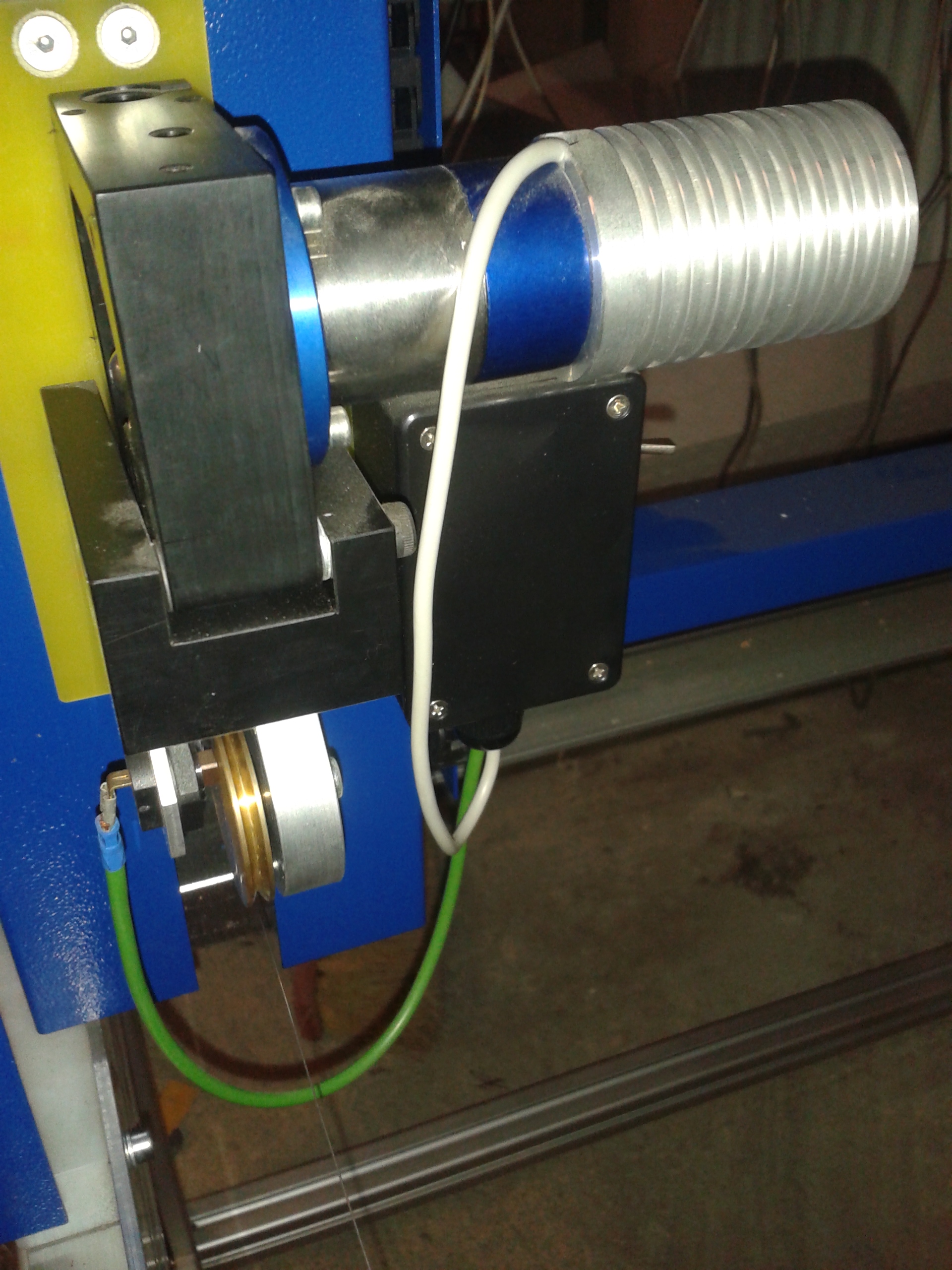 Rozjezdy x1000 Y 1000 ( ale prakticky max 950mm) a šířka je nastavitelná ted jí mám aby se dalo řezat desky 1200mm široké. Zajímavě je řešeno napínání drátu které je realizované pomocí dc motoru s planetovou převodovkou ( možná šneková) na jedné straně a pružiny na tenzometru na straně druhé. Ta je zaručeno konstantní napětí drátu i při šikmém řezu. Navíc toto řešení nepotřebuje mít luk na napínání drátu. Je to elegantní a chytré. Ještě uvažuju o 5 ose ale zatím na to prdím za to chtějí harpunu.
