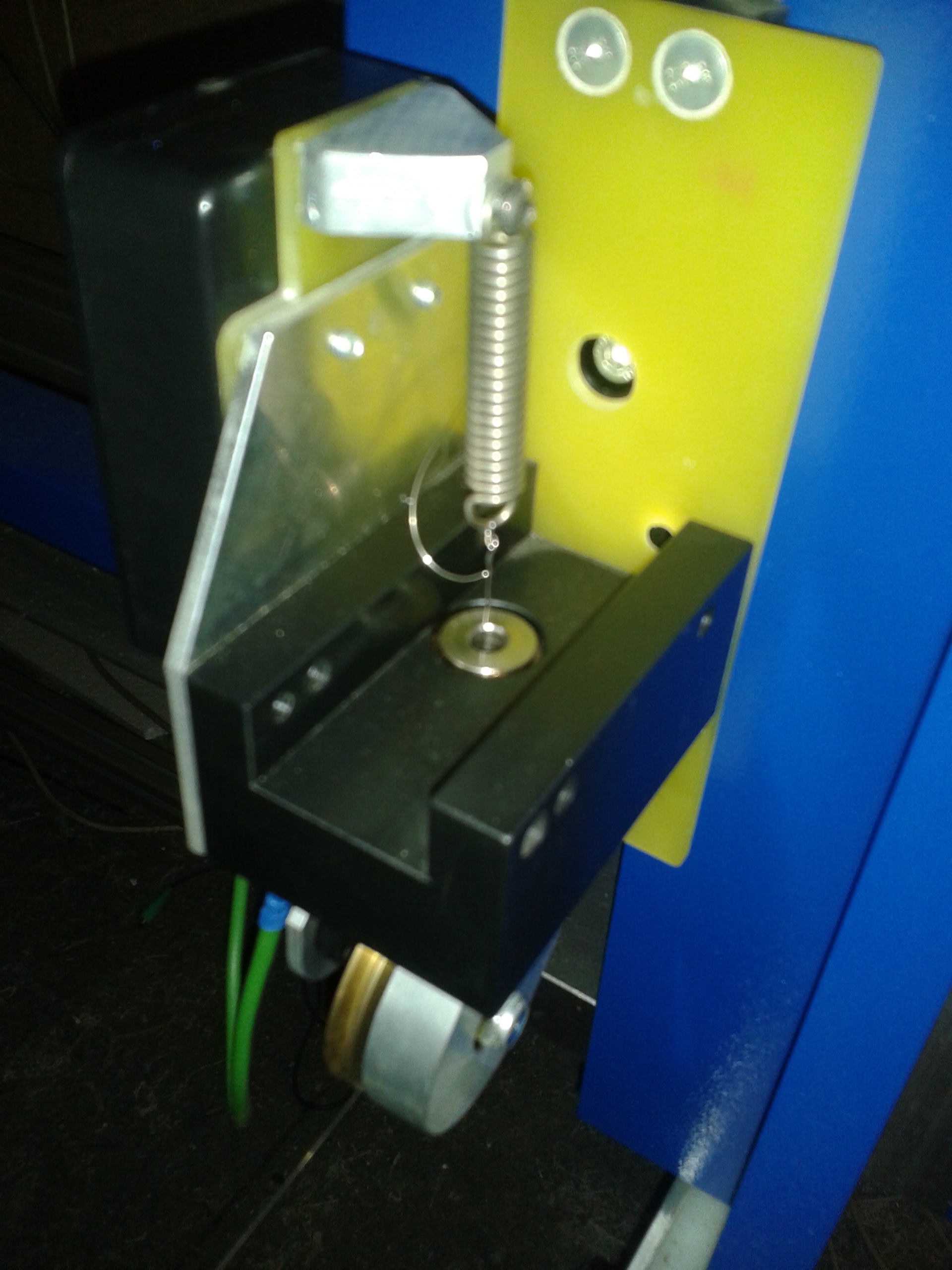 Jen bych to jeste zjednodusil a misto tenzometru bych jen hlidal urcite napnuti te pruziny, protazeni vetsi nebo mensi by sepnulo prislusny spinac.