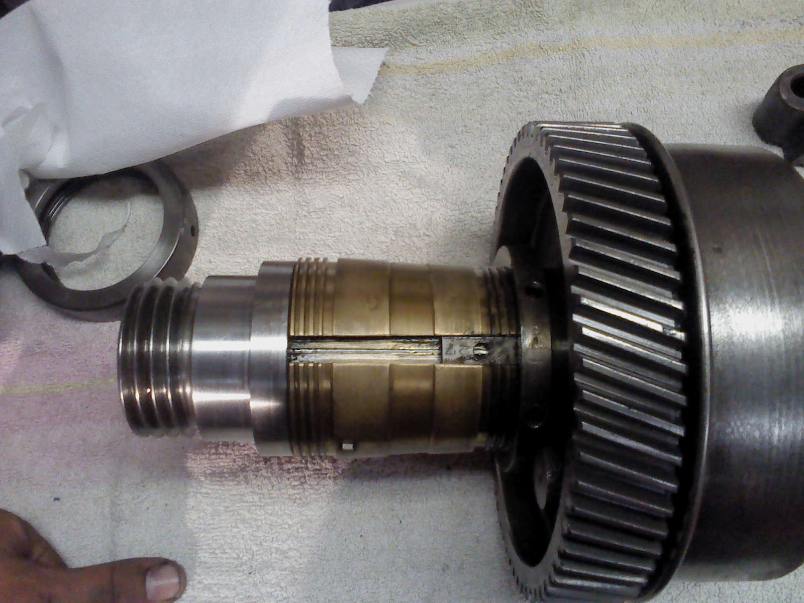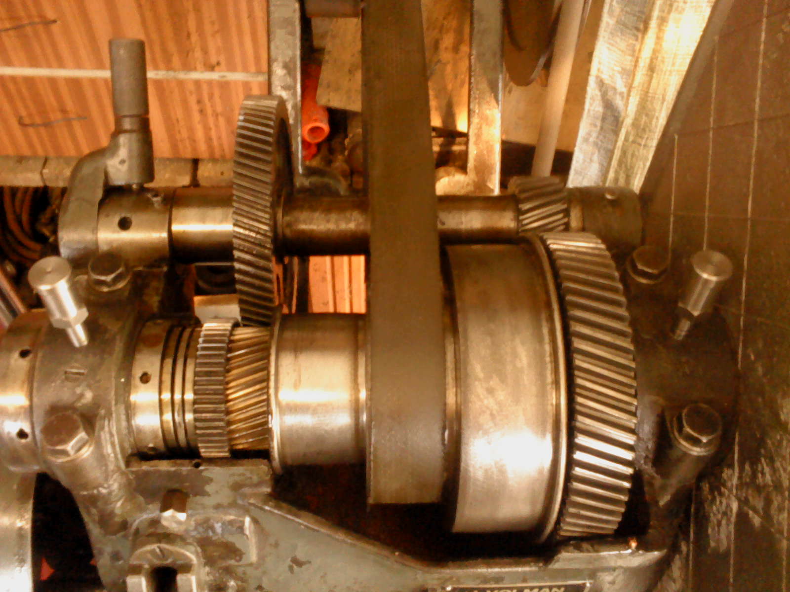 jinak to bronzové šikmé ozubení, které je na fotce vidět blíže k zadnímu ložisku není určitě originál, ten soustruh musel dostat neuvěřitelnou ránu a originál ozubení se očesalo