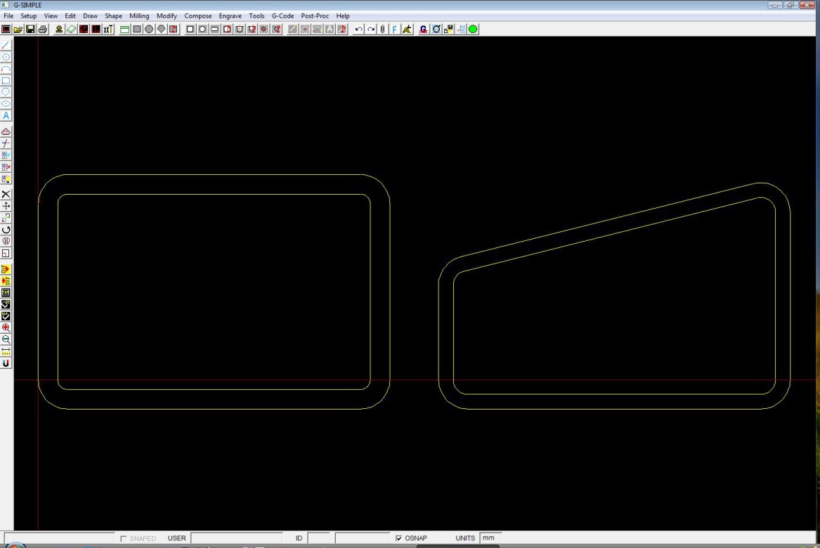 Ahoj, tak se pomalu prokousavam EMC2 a Gsimple a nedari se mi jedna vec. Chci frezovat vnitrni ctverec s tim, ze uz mam vyvrtanou diru a chci dofrezovavat jen plochy s radiusem. Nedari se mi to nakreslit. Pokazde ma tendenci frezovat celej vnitrek. Takze, jak nakreslit obraz s predem vyvrtanym otvorem?