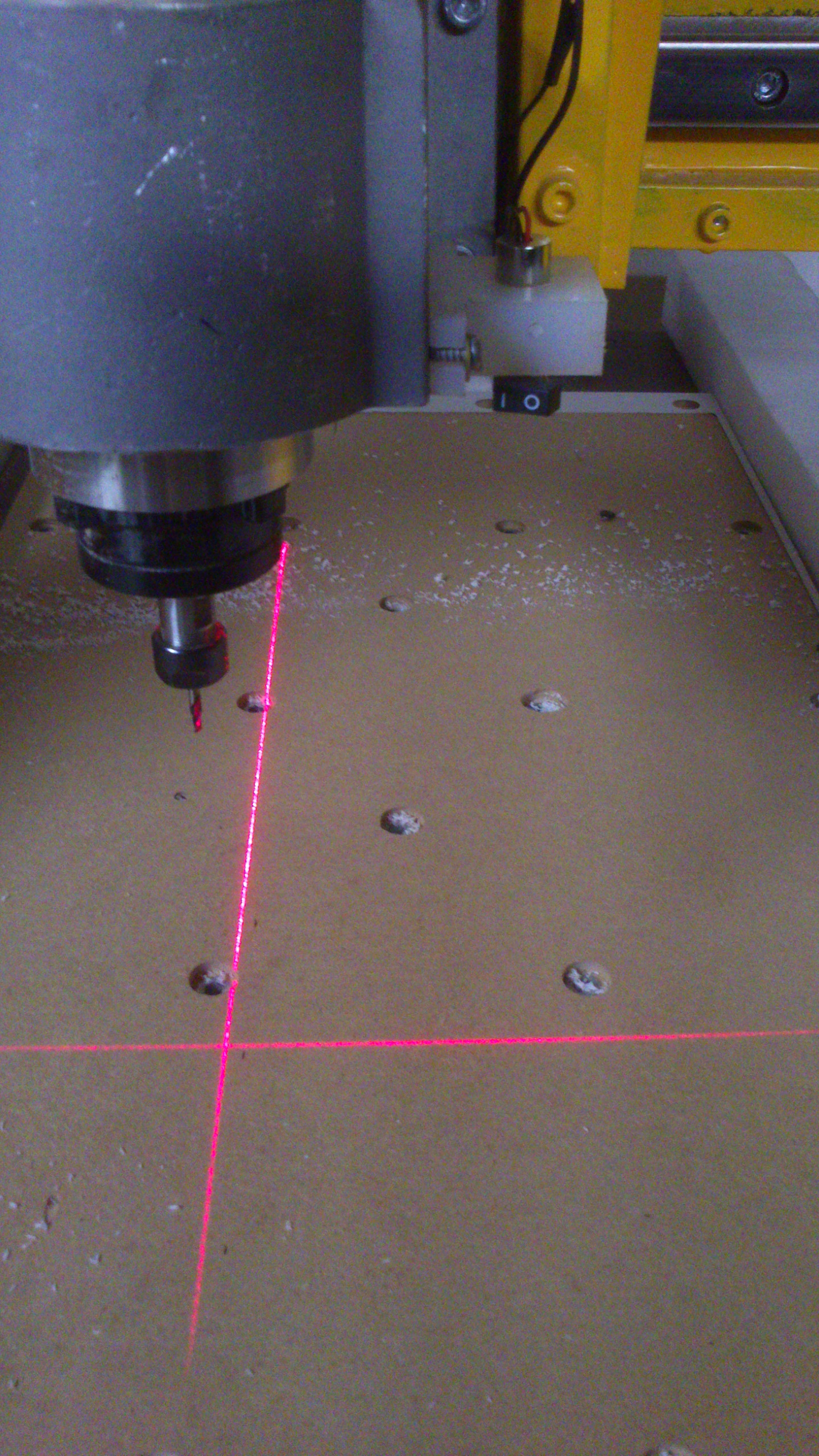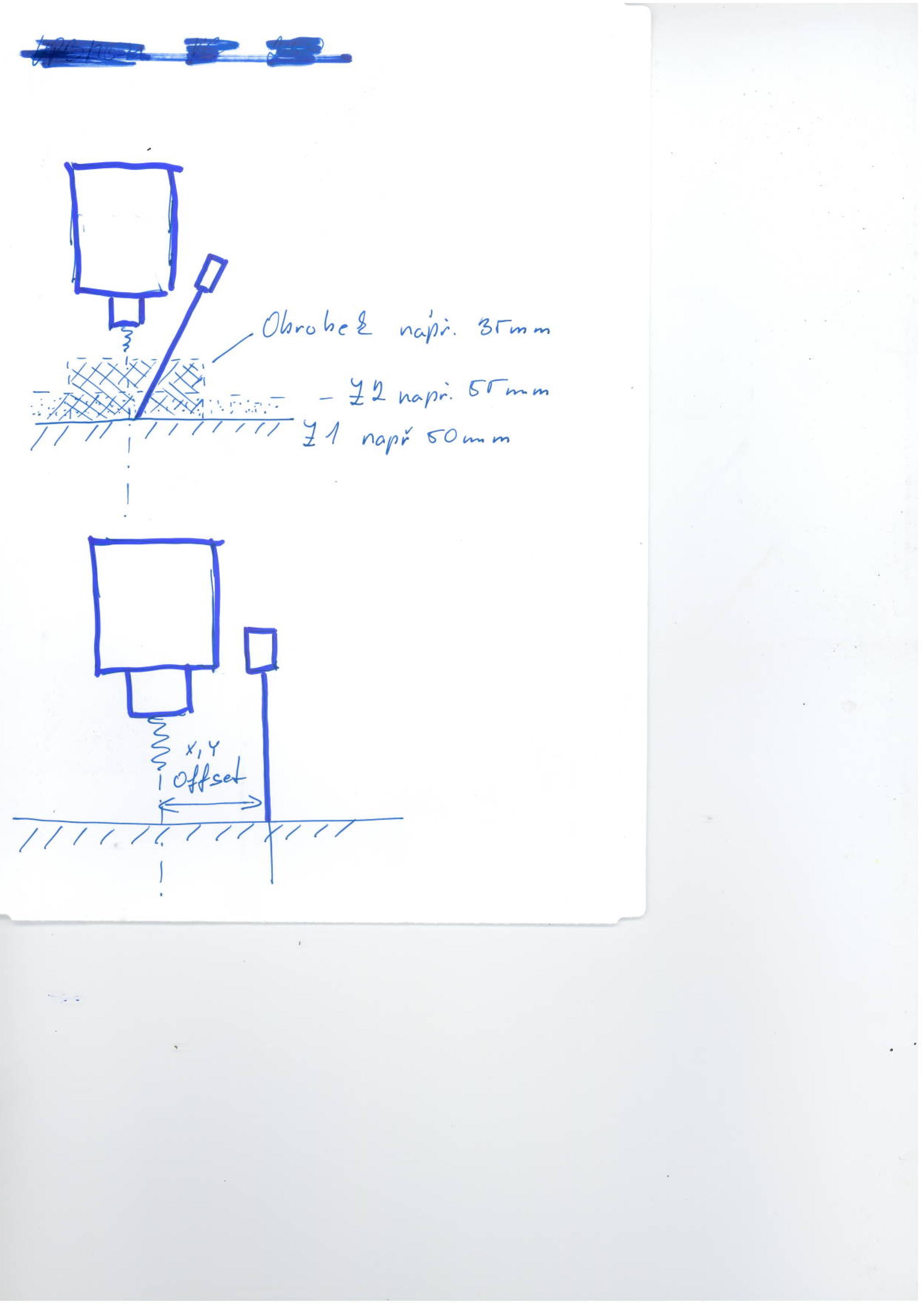 S tím Laserem se mi to nějak nezdá. Pokud je pod úhlem, tak si myslím, že nemůže ukazovat na střed frézy při jakékoli výšce Z. I kdyby byl pevně ne k držáku vřetene, ale třeba k pevné nepohyblivé části Z, tak si myslím, že to fungovat nebude. Po upevnění obrobku se výška zkrátí a tím posune koncový bod laseru. Musel by tam být nastaven výškový offset Z a ten by se musel při každém zaměřování nastavit na danou výšku nad obrobek. Pokud se pletu opravte mne. Osobně bych to asi řešil kolmým paprskem z nastaveným offsetem XY, laser by byl na pevné části Z. Obdoba se řešila tady:http://www.c-n-c.cz/viewtopic.php?f=34& ... 30#p135503
