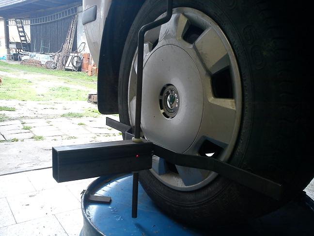 Šikovnej pomocník, pěkný. :D Tu kolmost nebo svislej úhel kokám měříš přípravkem opřenej o pneu? Taky jsem viděl, že pokud zvedneš auto, mělo by dosednout na pohyblivé vozíky do stran aby se kolo srovnalo. Možná se pletu, nevím.
