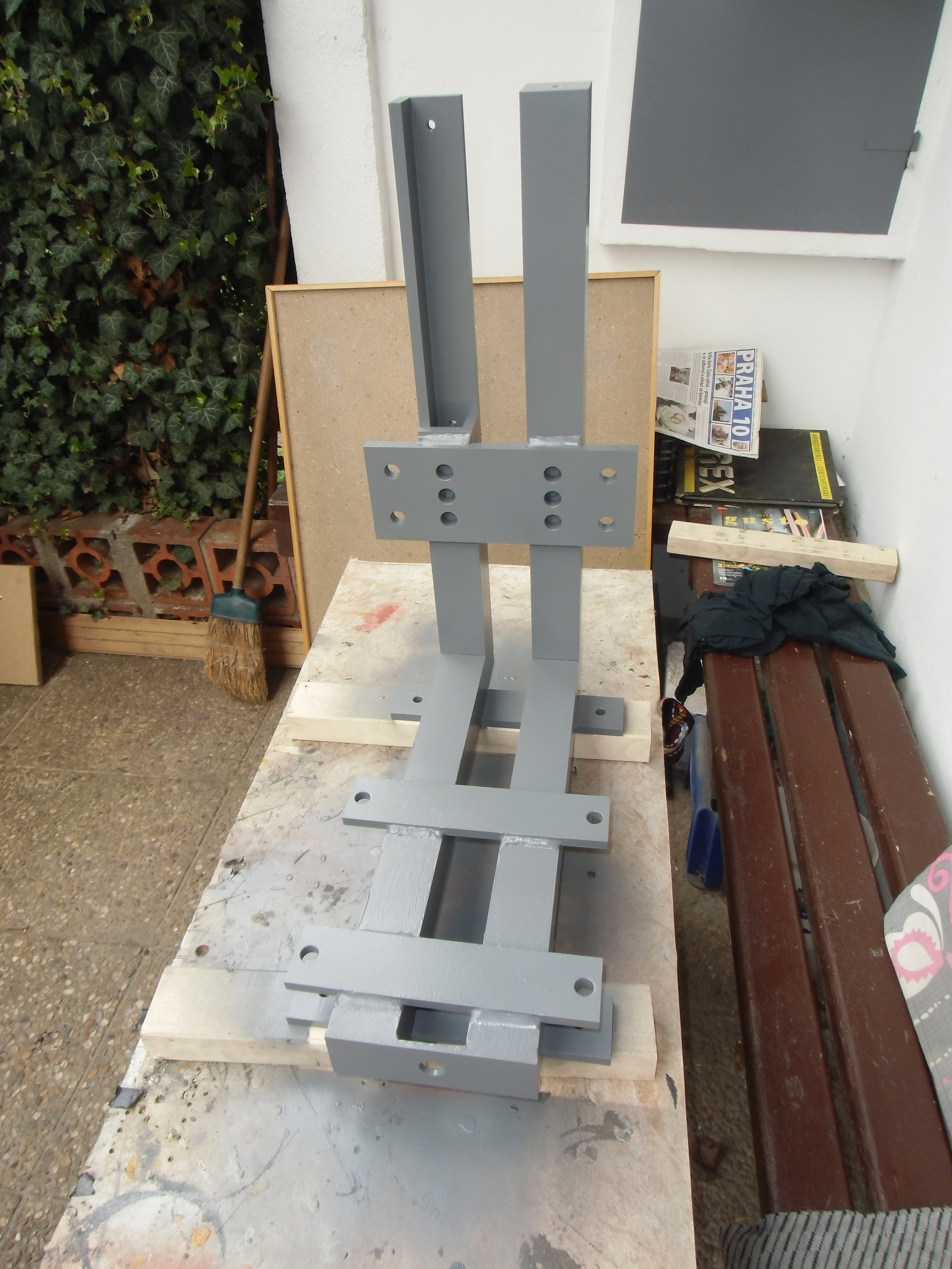Konstrukce je schvalne takto resena, abych mohl stroj sestavovat po hotovych dilech doma, svarky 50x50/10 tazena ocel h11, stul 40x40/10, desku stolu mi kamarad dela z AL tloustka 2,5mm, vaha bude celkove cca. 120Kg - 150kg. Dilna bude, zatím pokoj
