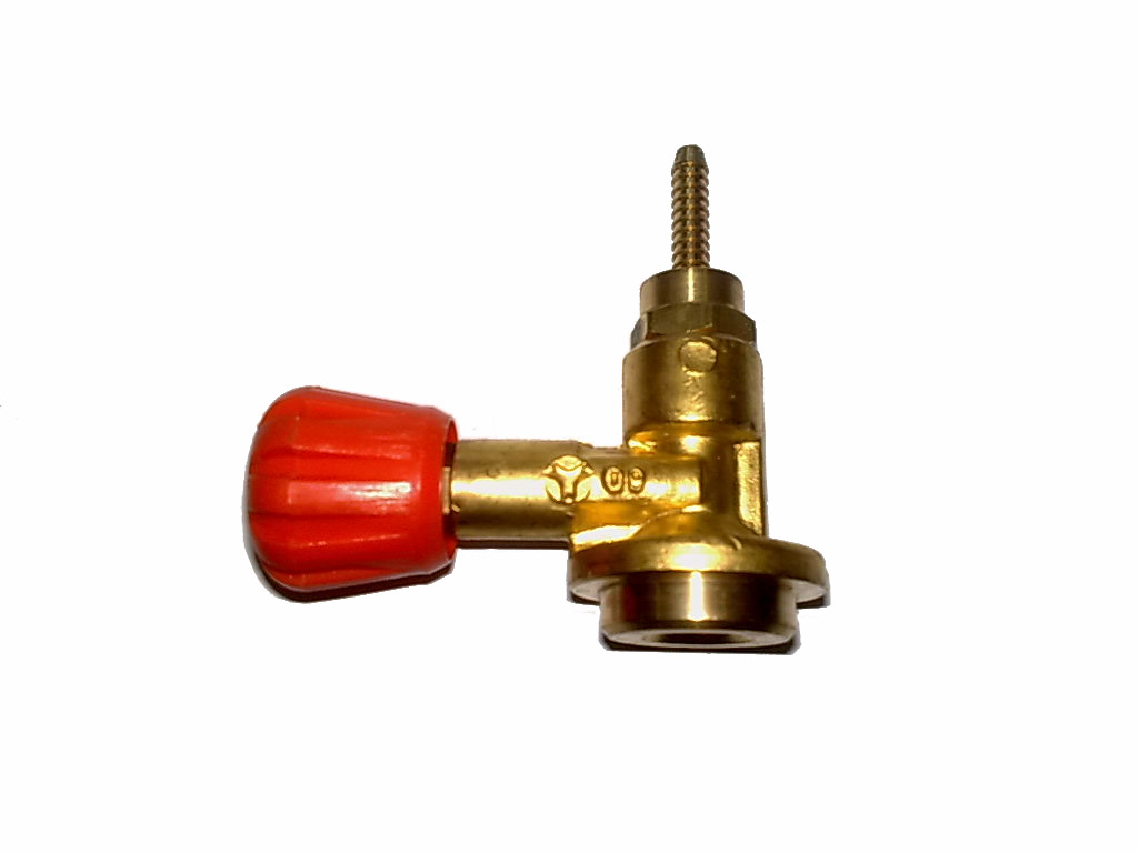romazaná fotka ventilu Rothemberger ,dotažením se hrotem otevře plechovka a ventilem se dá uzavřít a regulovat , je to z pájecích souprav