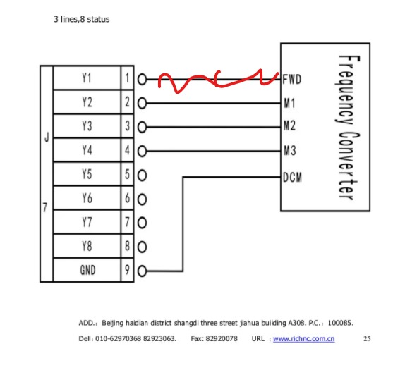 Jedna z možností jak to může fungovat je, že RichAuto se chová jako relátko. Je to sice málo pravděpodobné, ale na druhou stranu tímto pokusem nic nezkazím. Zkusily jsme spojit Y2 a GND a vřeteno se neroztočilo. Takže tuto variantu mohu vyloučit.
