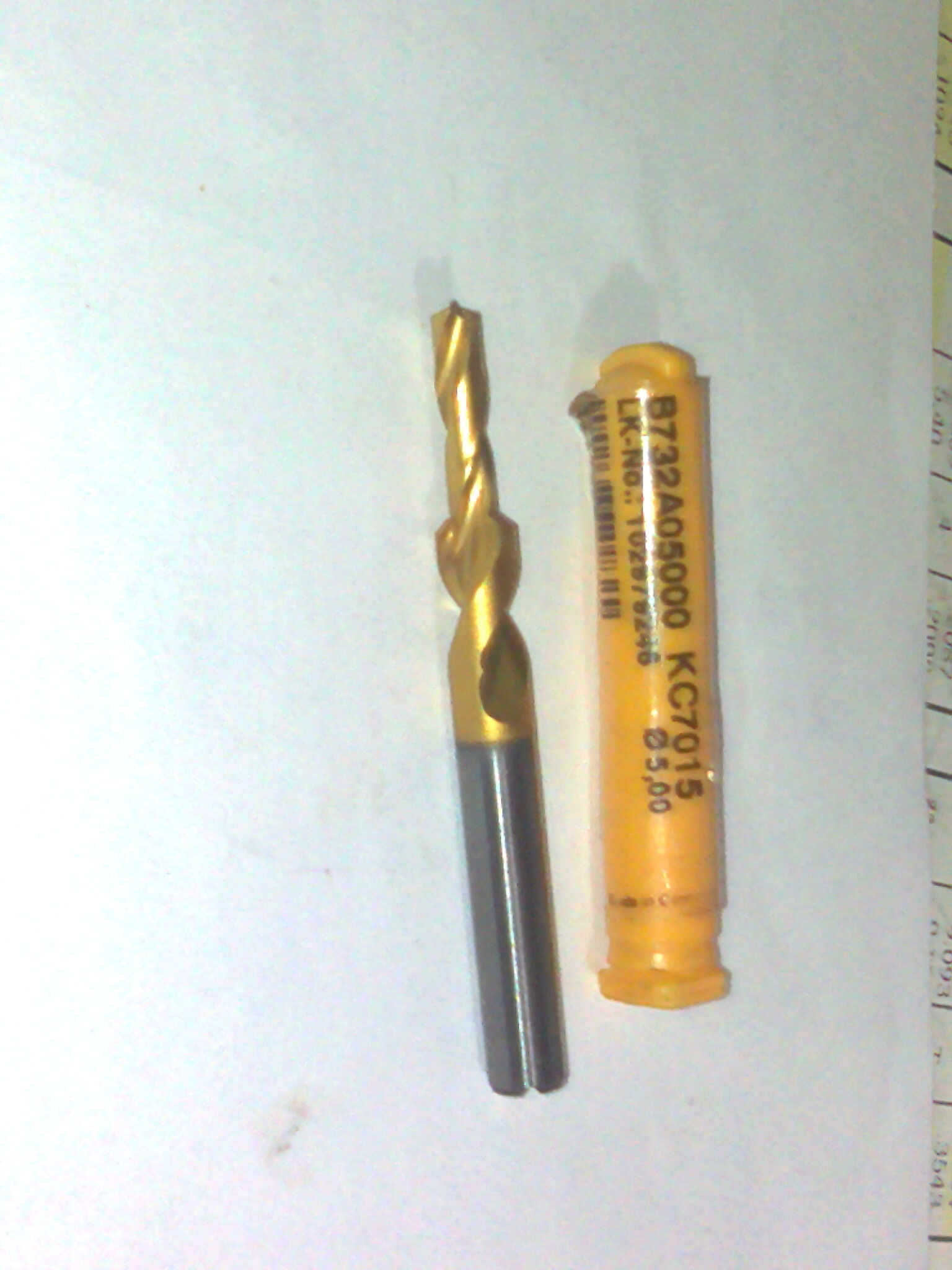 Prodám nový karbidový vrták Ø 5,00 mm s vnitřním chlazení a povlakem TiN, Kennametal B732A05000 KC7015,