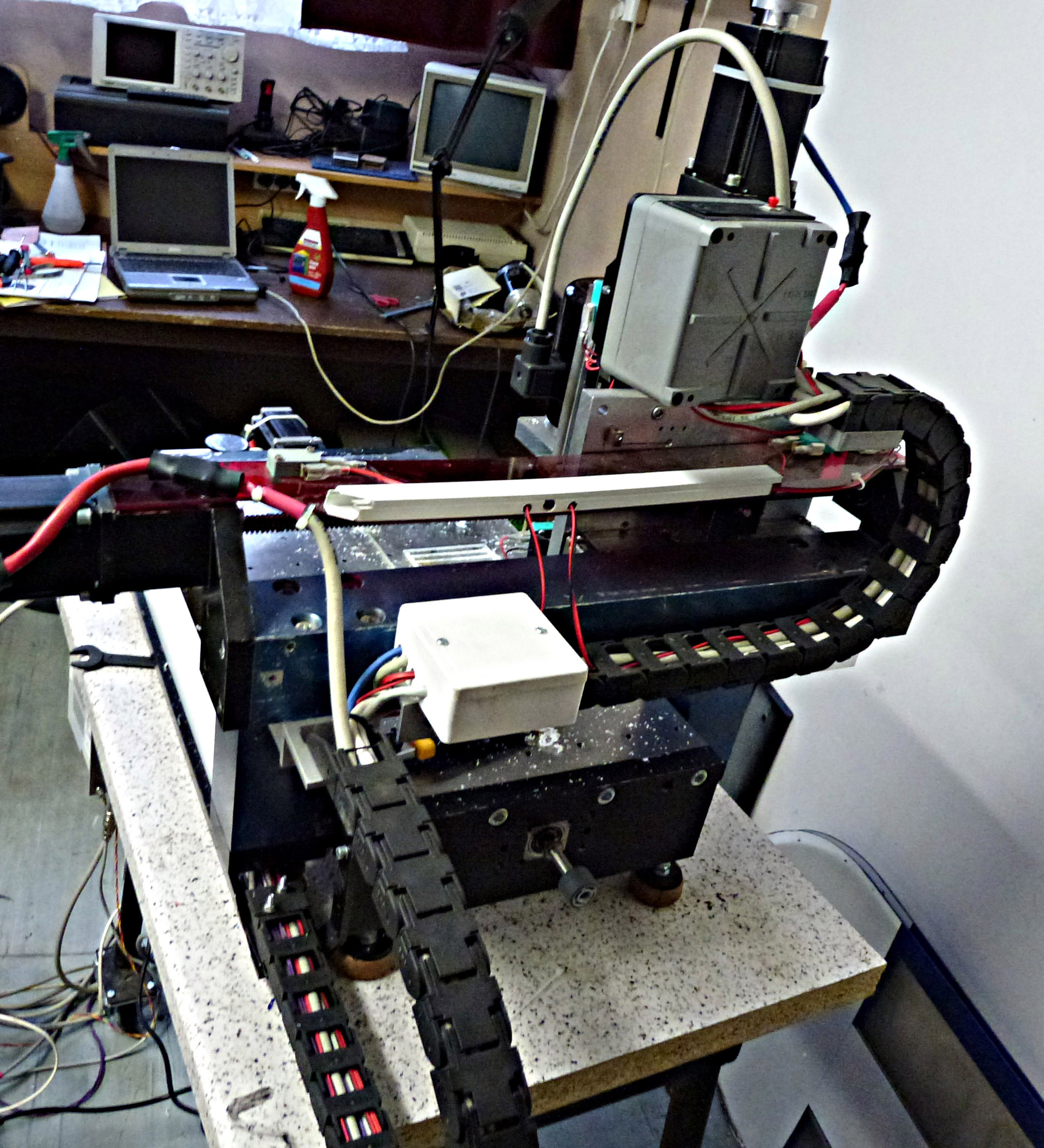 Vždy mě fascinovalo koukat na CNC mašinku jak něco "sama" vyrábí. Postupem času se tyhle strojky dostaly i hobby sféry a já začal uvažovat, že si něco pořídím taky. Protože jsem až do převratu pracoval ve fabrice, byla moje volba jasná. Musí to být kovové. Sice mám dílnu, ale výrobu přesných velkých dílů nezvládnu. Tak jsem koupil toto. Tedy, původní majitel byl dobrej na mechaniku, ale elektro opravdu nic moc. Původní řízení H1 + Mach. Pár týdnů jsem se pokoušel to rozchodit, ale stále to sem tam přišlo o nějaký krok. Dobrá, koupím něco "lepšího" a koupil jsem modrou čínu. Zase pár týdnů dodělávek a úprav a už to chodilo skoro stejně jako ta H1