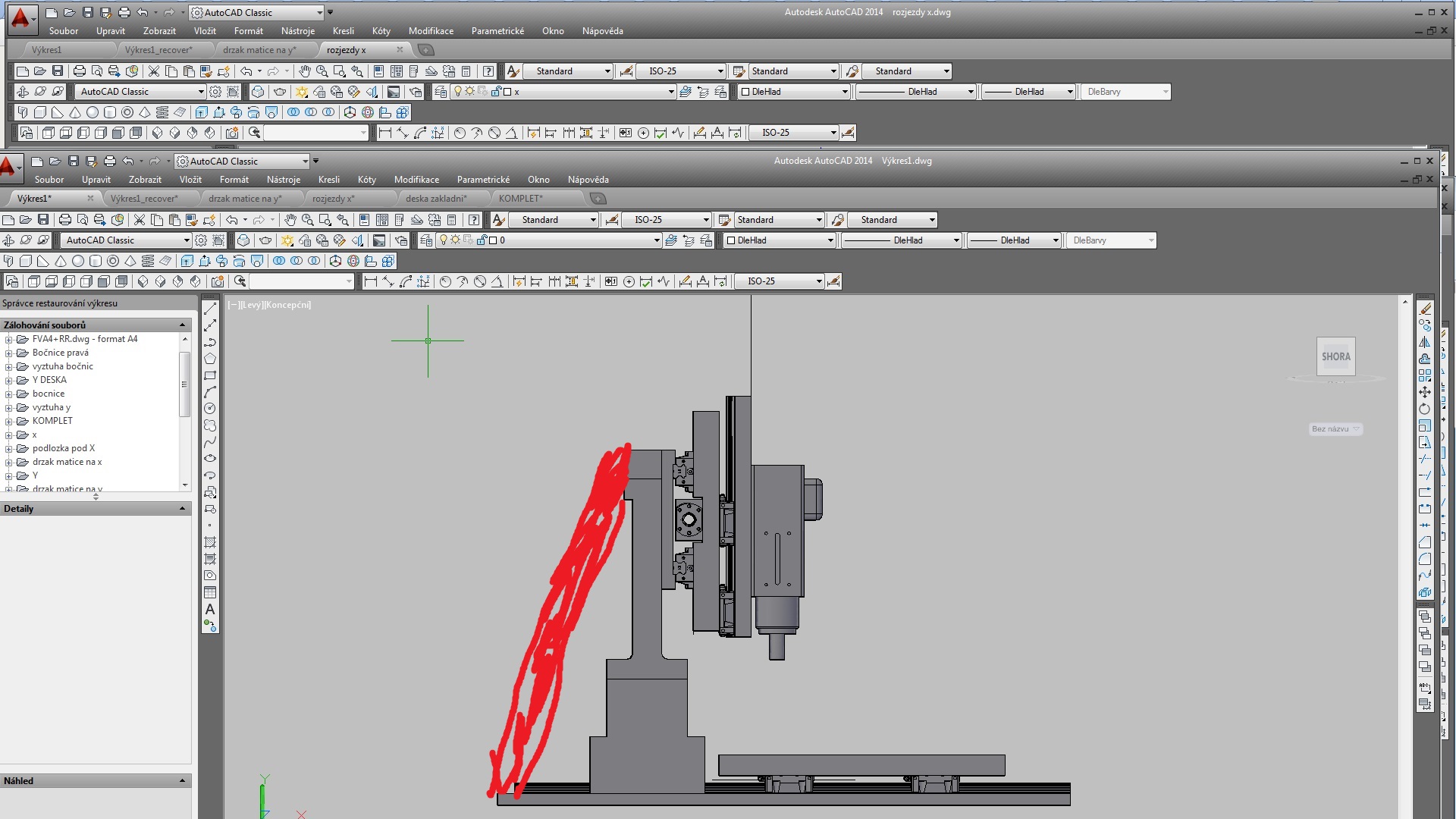 ale jelikoz sem si stal za navrhem dokupoval sem postupne veci..... cili mam kolejnice voziky .loziskove domky, matice na 20ku kuličkac. motory drivery.+litinova deska uz je take opracovana takze postu i nakres rozmisteni der na desce.Muj vysneny model je pry bohužel chatrny tak budu rad za rady na zlepseni.