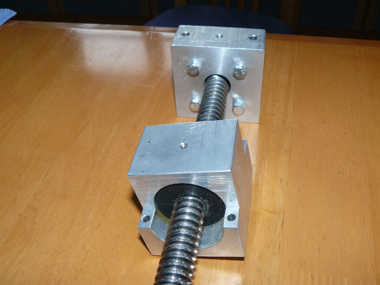 Prodám mechaniku CNC portálové frézky - hnací trapézový šroub (pr. 16/stoupání 4) s duralovým příslušenstvím (domečky a nylonová samomazná matka, včetně ložisek).