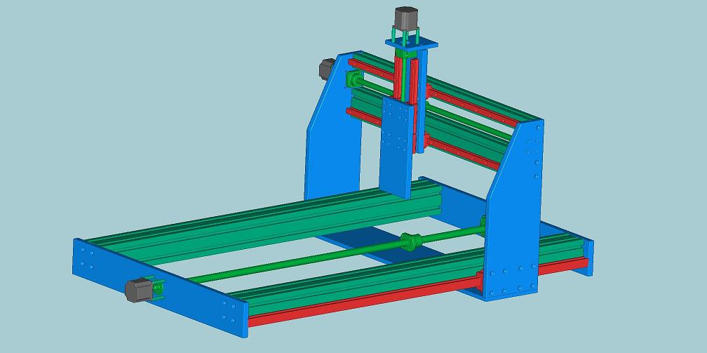 Rozjezdy X-1100mm, Y-700mm,Z-140mm. Pojezdy na lineárech, kuličkové šrouby a zbytek hliník, bočníce 16mm, drobnosti 10mm. Mám tu pár hliníkových profilů, tak bych je chtěl využít.