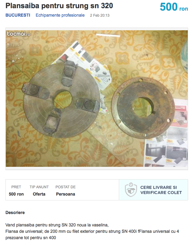Je to můj první soustruh, ale můžu říct, že jsem s ním nad míru spokojený. Je to robustní konstrukce, dá se převíst na paleťáku a velikost tak akorát. Měl jsem štěstí na pěknej kousek. Lak sice už nic moc, ale lože v perfektním stavu a převodová kola uvnitř, jakoby ještě ani nebyla zaběhnuta. Všude ostré hranky jak po brusu, nic není odrbané. Jediné, co mě trochu zlobí je spojka na pravý chod. Po delší době běhu stroje se mi stává, že se vřeteno při určitém nastavení otáček otáčí i když mám spojku vyplou (v prostřední poloze). Zkusil jsem tedy hned povolit jistící šroubek a takovou tou matkou tu spojku trochu povolit, nicméně bez zdárného výsledku. Měl jsem to po delším laborování povoleno již tolik, že bylo znatelné, že se vřeteno po spuštění dlouho rozjíždí a stejnak se pak při určitých otáčkách začlo v nulové poloze spojkové páky samo točit. Takže jsem spojku nastavil alespoň na optimální mez rozjezdu a zkusil ještě přitáhnout brzdu. Je to sice o něco lepší, ale občas mi to stále udělá. Zkoušel jsem desítky nastavení. S tou matkou na spojce hýbal po milimetrech, půl dne ruce v oleji a stejně jsem stále vlastně na začátku.
