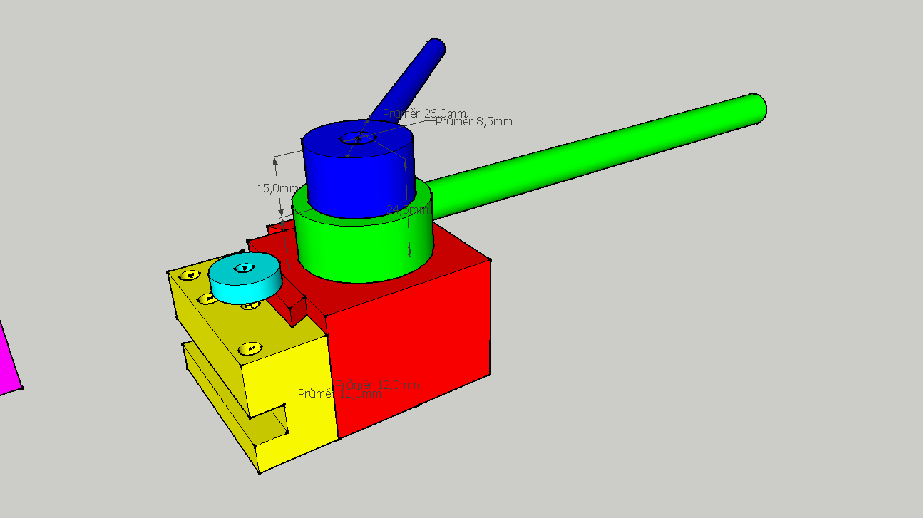 RaS píše:ale ta zelená páka má volný pohyb jinak by jsi s ní nehnul.. ta modrá páka má výšku třeba 100mm a ta zelená třeba 99,8 takže tam vznikne vůle třeba 0,2mm aby s tou zelenou šlo točit..