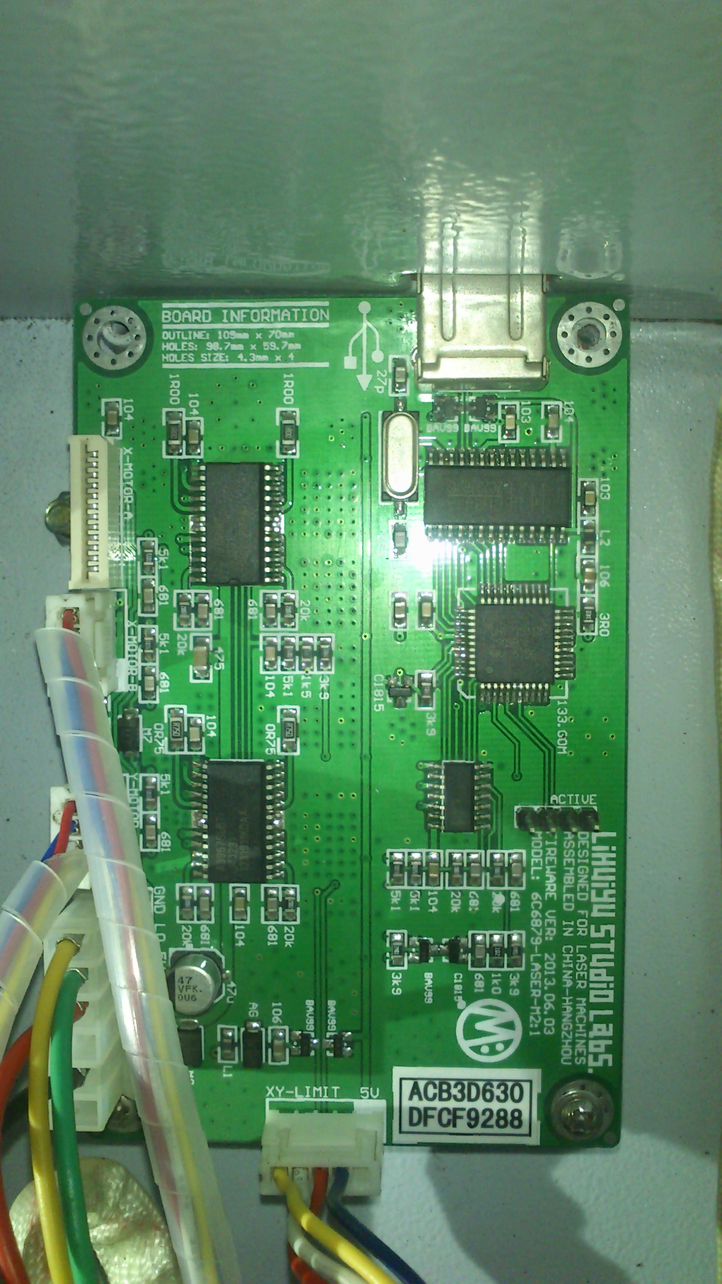 Tak při optimalizaci došli k tomu že jeden šroub stačí, druhá strana desky drží za usb konektor :) .Jinak vzhledově ta deska vypadá docela hezky zapájená ,ty první lasery byly strašné bastly.