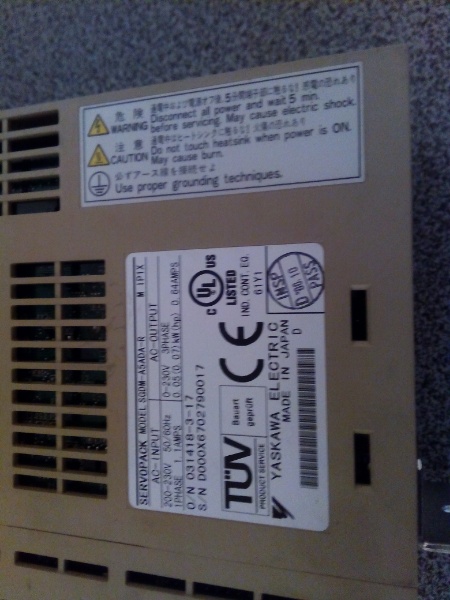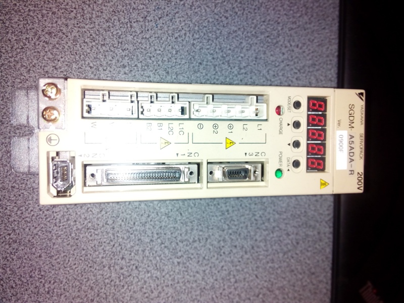 50w Set obsahuje Samotne servo 50W / 200V, driver SGDM-A5ADA-R, kabel na pripojenie enkodera do driveru, programovaci kabel na RS232 pre nastavovanie servo driveru + cd s manualmi a datasheetami + programovaci SW od yaskawa. drivery sa pripojuju na 1 Fazu / 230V