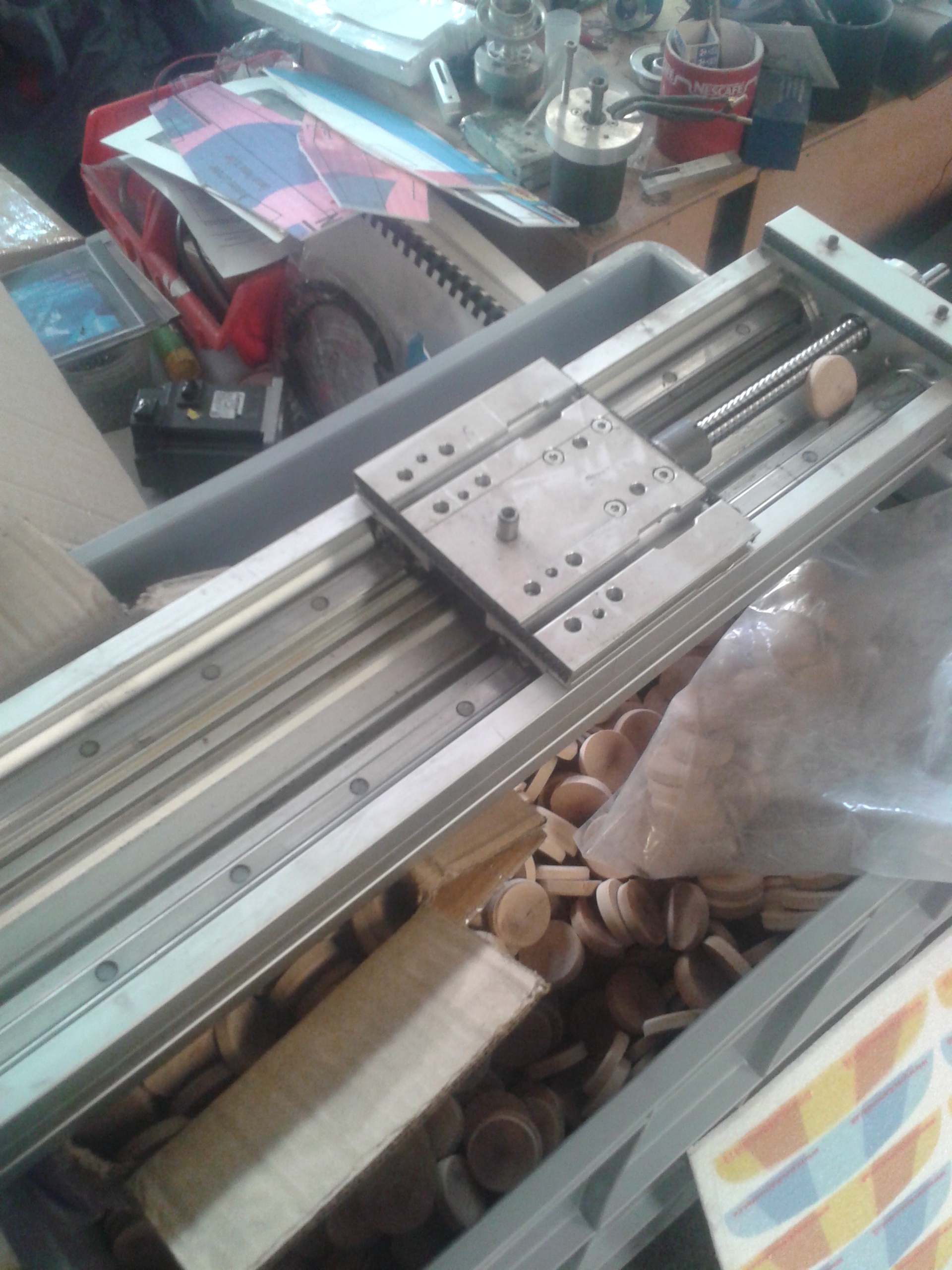 Mám lineární osu Berger Lahr, rozjezd bez měchů 500mm. Krátký kuličkový šroub. Potřebuju rozjezd cca 250-300mm a je mi to líto upálit. Měchy na fotce nejsou.