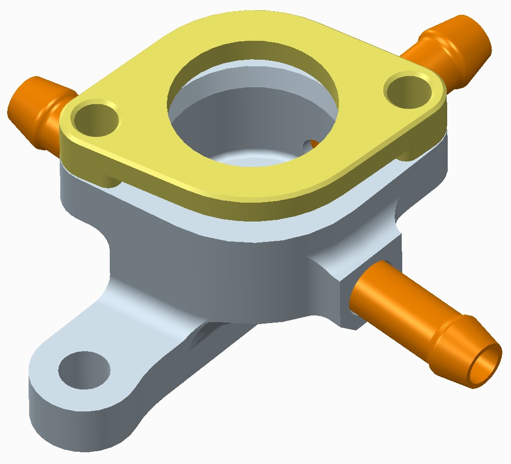 Jde o sestavu telo (sede)+3 natrubky, slisovane nebo svarene dohromady a k tomu jedno vicko (zlute). Vse z Duralu ci neceho podobneho, aby to slo svarit a naeloxovat, neni zas tak dulezite.