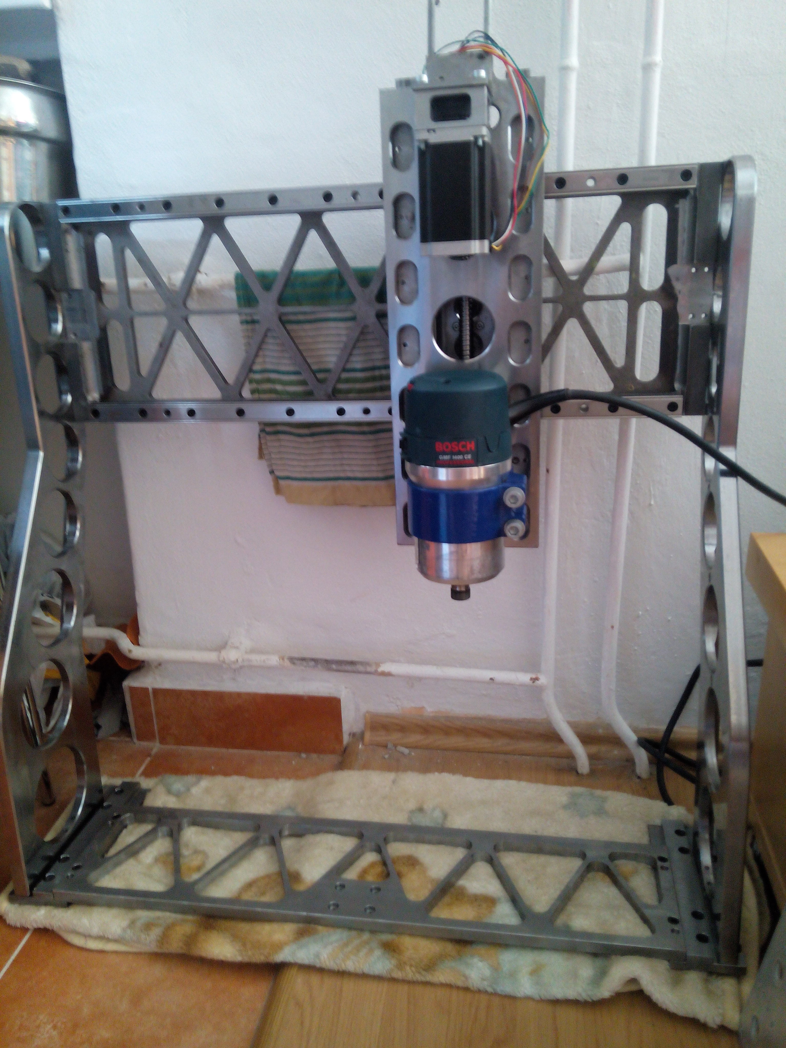 Uz kdysi me predstava vlastnit jakysi strojecek pro zabavu napadla a touha prerostla ve stavbu a diky svemu zamestnani sem mel dost ulehcenou situaci co se zpracovani a obrabeni tyce ovsem znalosti a zkusenosti se stavbou cnc nula alespon co se tyce elektronicke casti a kdyz uz sem se po precteni mnoho vlaken tu naucil a donutil sve krokove motory hybat zahajil sem stavbu pouzil sem 22 ocel plech napsal program upl nastroj a zacal...