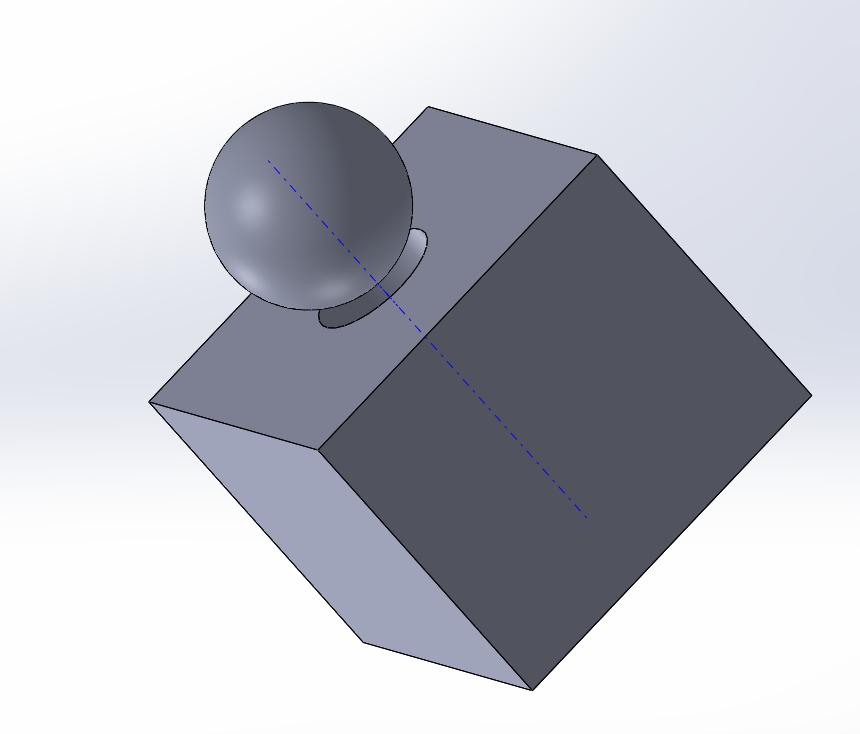 zkusil jsem to jinak - napřed udělat kouli s plochou, která jde lehce posadit na plochu kostky, bohužel při změně průměru díry neumím nějak jednoduše změnit tu plochu na kouli, aby se sestava sama opravila