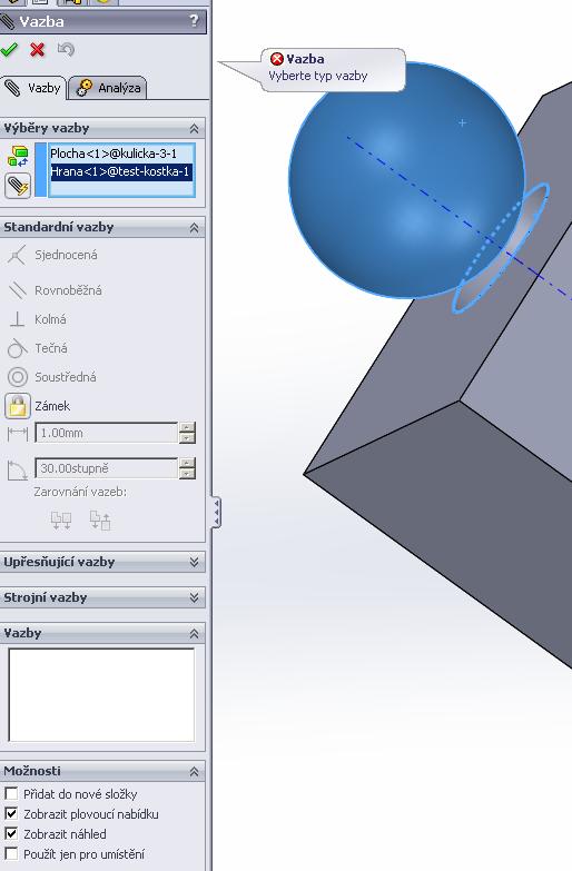 nedaří se mi v sestavě svázat vazbou kouli posazenou na díru.