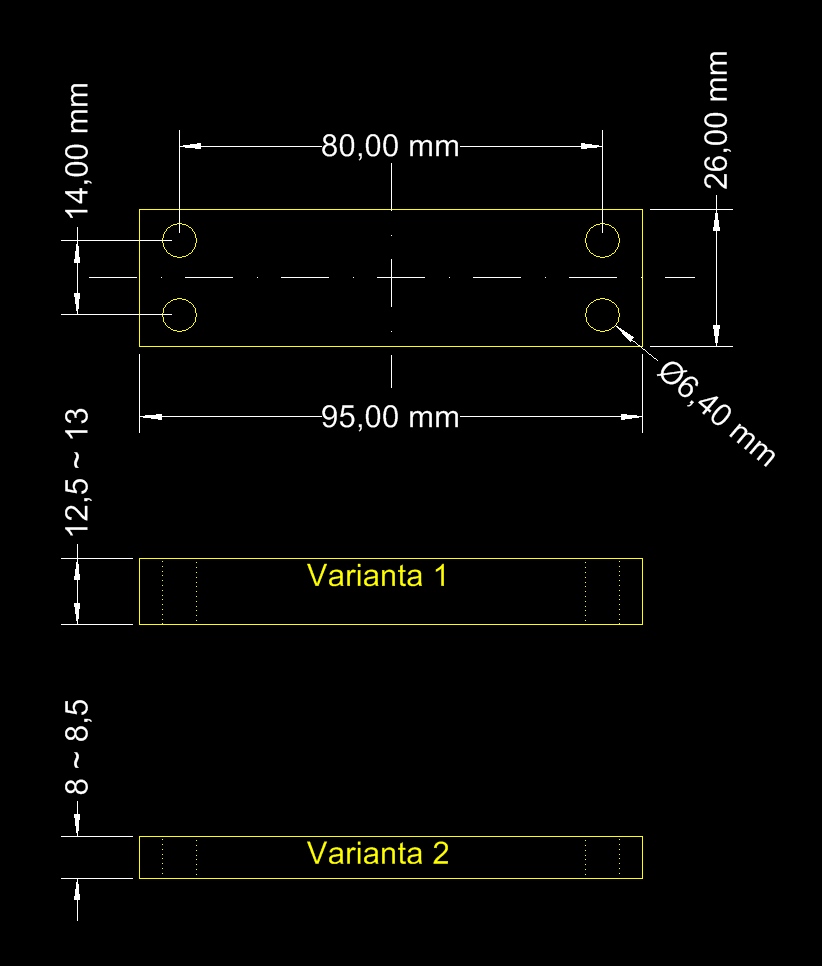 Dám 200 + pošta, nespěchá to, udělejte to, až pojedete něco podobnýho, pak je to myslim na pár minut. Připomínám, že jediný plochy, na kterých záleží, jsou ty dosedací, ty by měly být rozumně hladký, rovnoběžný a v zadaný vzdálenosti, zbytek může bejt řízlej třeba flexou (hodnoty 26 a 95 berte jako minima), viz. účel použití. Materiál bych asi zkousl i ocel, ale dural bych radši.