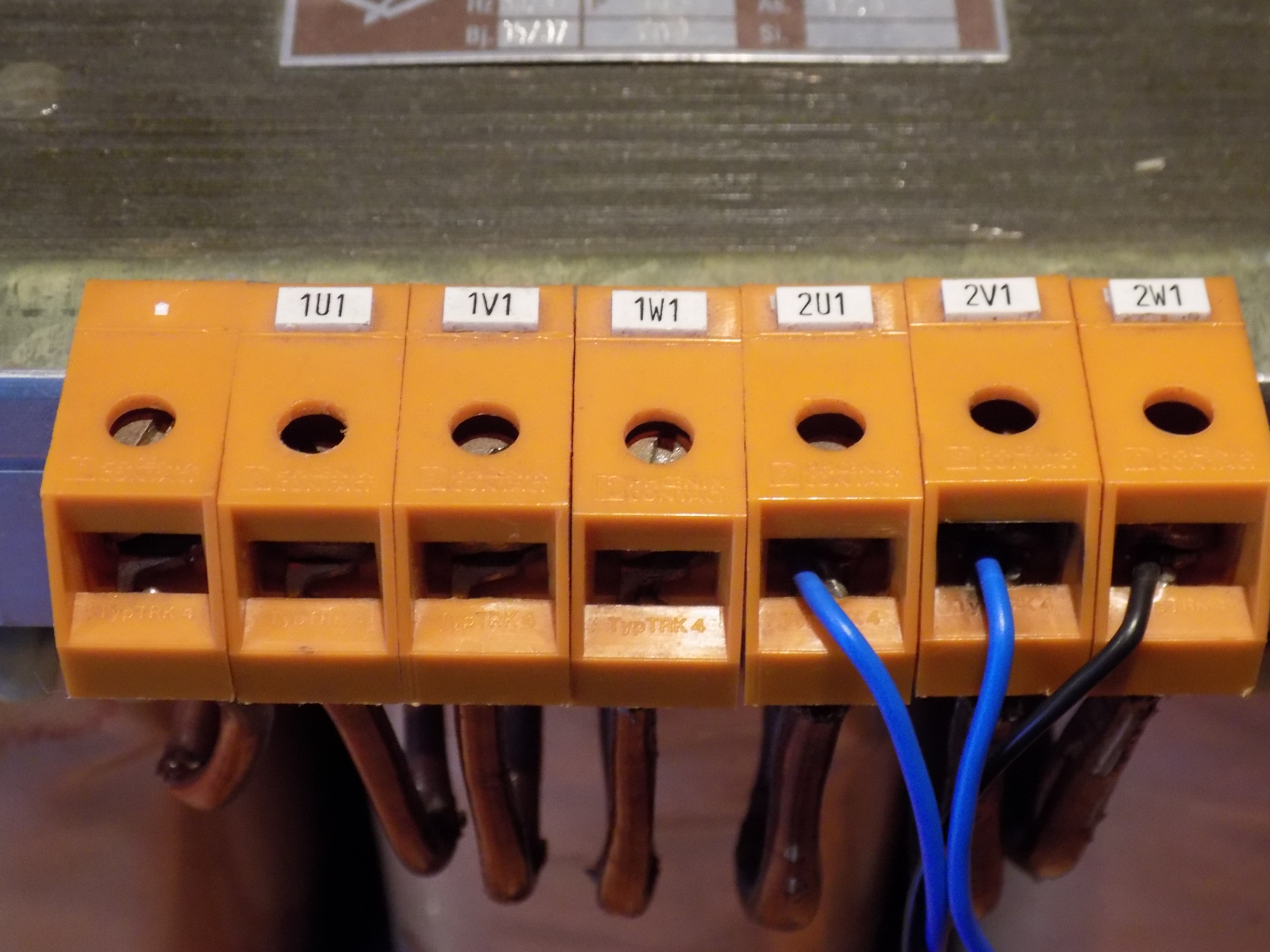 Na straně, kam se připojuje 400V musí být odpor vinutí větší než na druhé straně (je tam víc závitů drátu). Takže pokud se 400V připojuje na stranu 1, tak odpor třeba mezi 1U a 1V musí být vetší, než mezi 2U a 2V.