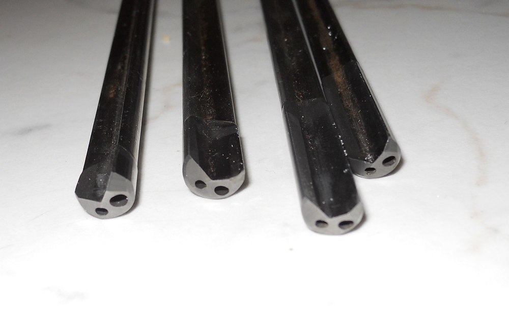 Výkon třeba je - protože aby to fungovalo, tak se musí tříska správně "sbalovat a lámat", čemuž i pomáhá ten výplach - takže konstatní posuv, žádný šmudlání. Původní "klasický" výplach býval třeba 2 - 3 atp, podstatně lépe a produktivněji se vrtá s vysokotlakým výplachem - třeba i 30 atp a víc - prostě se to musí uchladit, umazat a vypláchnout - to bez tlaku jde špatně - navíc když ten řezný olej špatně vede teplo.