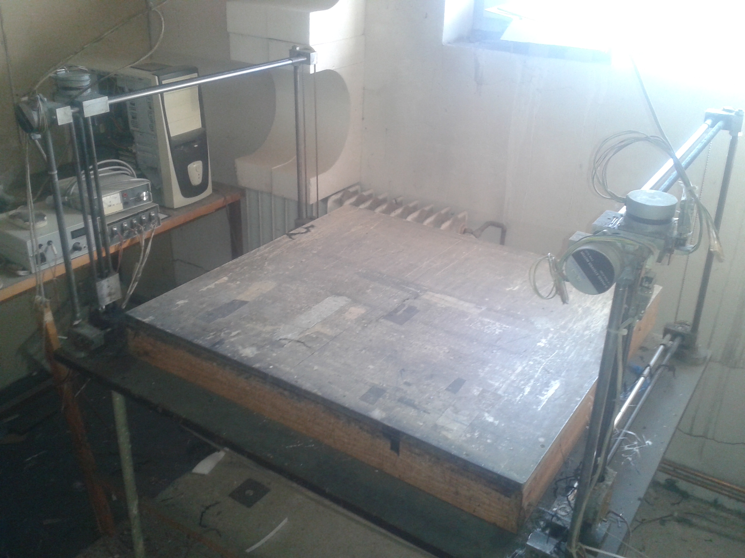rozjezdy cca 600x300mm, šíře je podle stolu, ted asi 800mm. Nutné vyčistit a možná udělat nějaké to nové pouzdro běhala asi 15 let bez jakékoliv údržby.