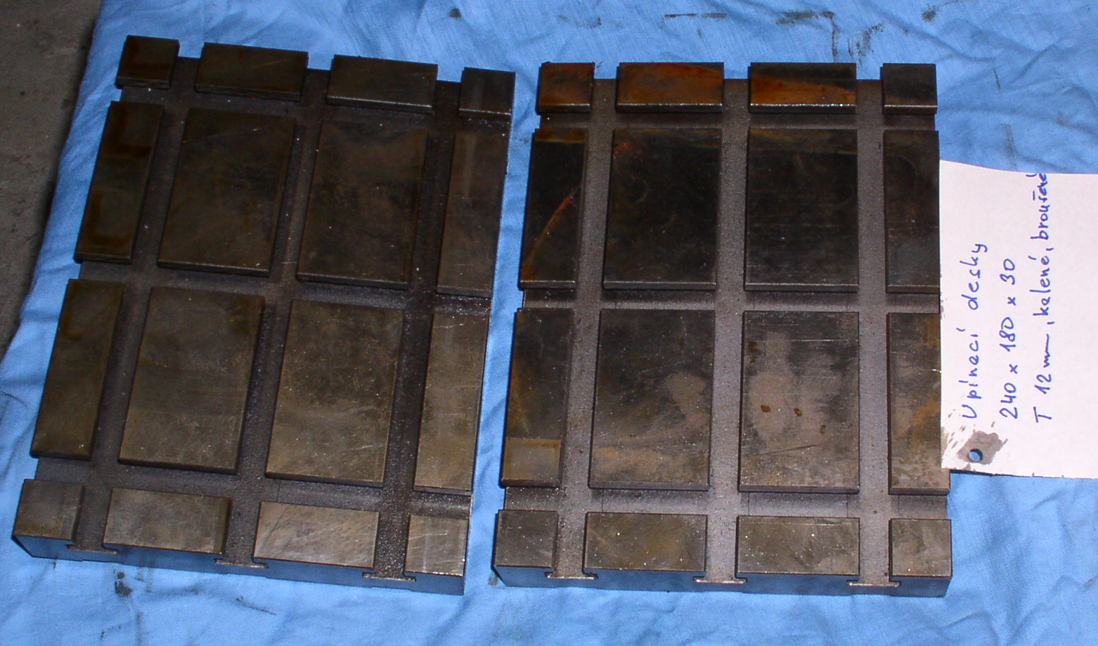 Nabízím 2 kusy kalených, broušených upínacích desek. Jsou nové, nepoužité (to hnědé na fotkách je jen konzervační olej) z nějaké ruské stavebnice. Cena 2490,- Kč