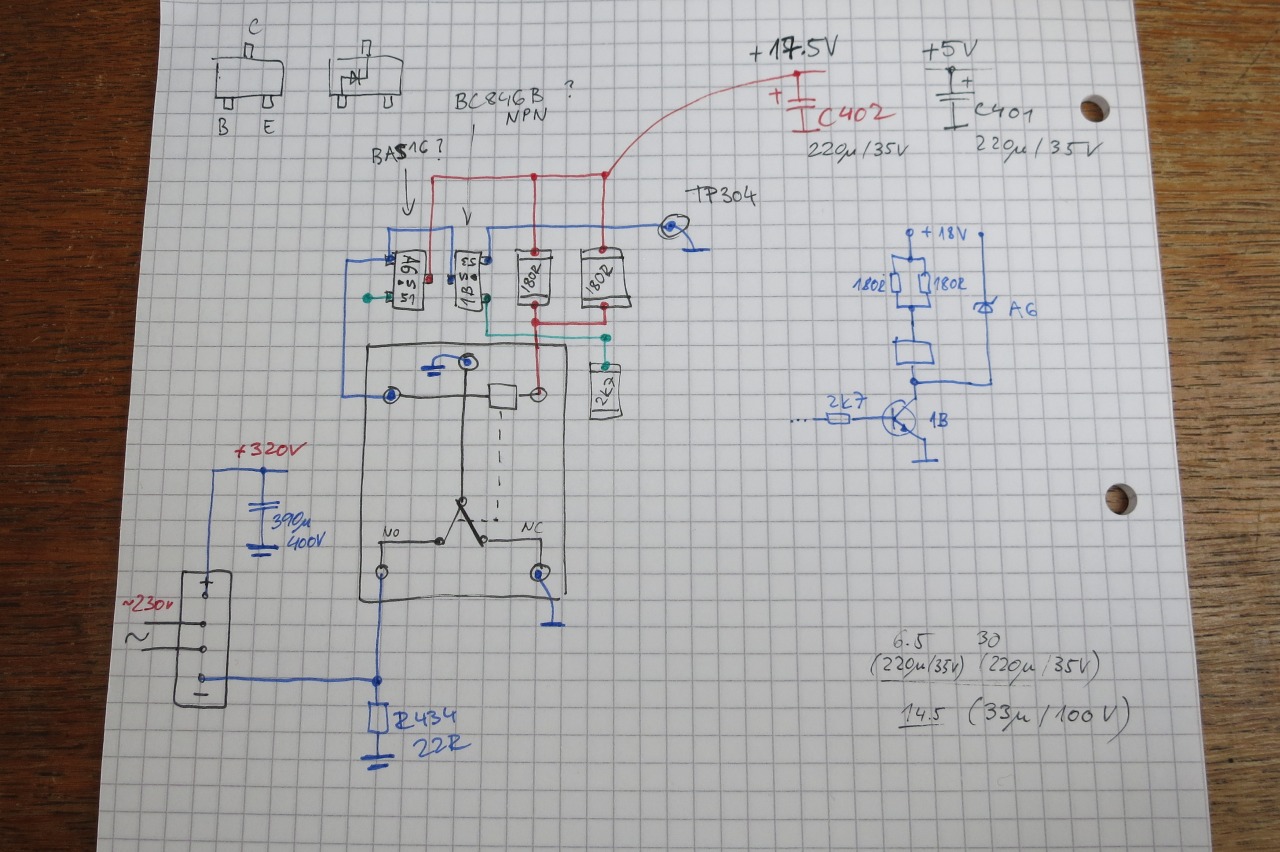 Dík, odpor je v pohodě, relé je v pohodě, tranzistor je v pohodě, napájení relé driveru je v pohodě atd., relé se nezapne, protože se na vstupu prostě neobjeví řídící signál.. Taky jsem proměřil všechny větve spínanýho zdroje (resp. napětí na všech kondenzátorech, který vypadaly jako filtrační, 4x 220u/35V, 1x 33u/100V), většina mi přišla OK, jen na tom 33u/100V bylo pouze 14.5V, což je podezřelý. Ale možná je to podobný případ jako relé driver, zapne se až na nějaký řídící signál. S dalšími pokusy chvíli počkám, jestli se nevyvrbí nějaký schema, takle na slepo je to dost naprd.