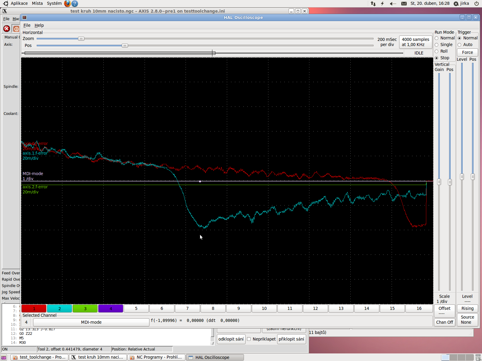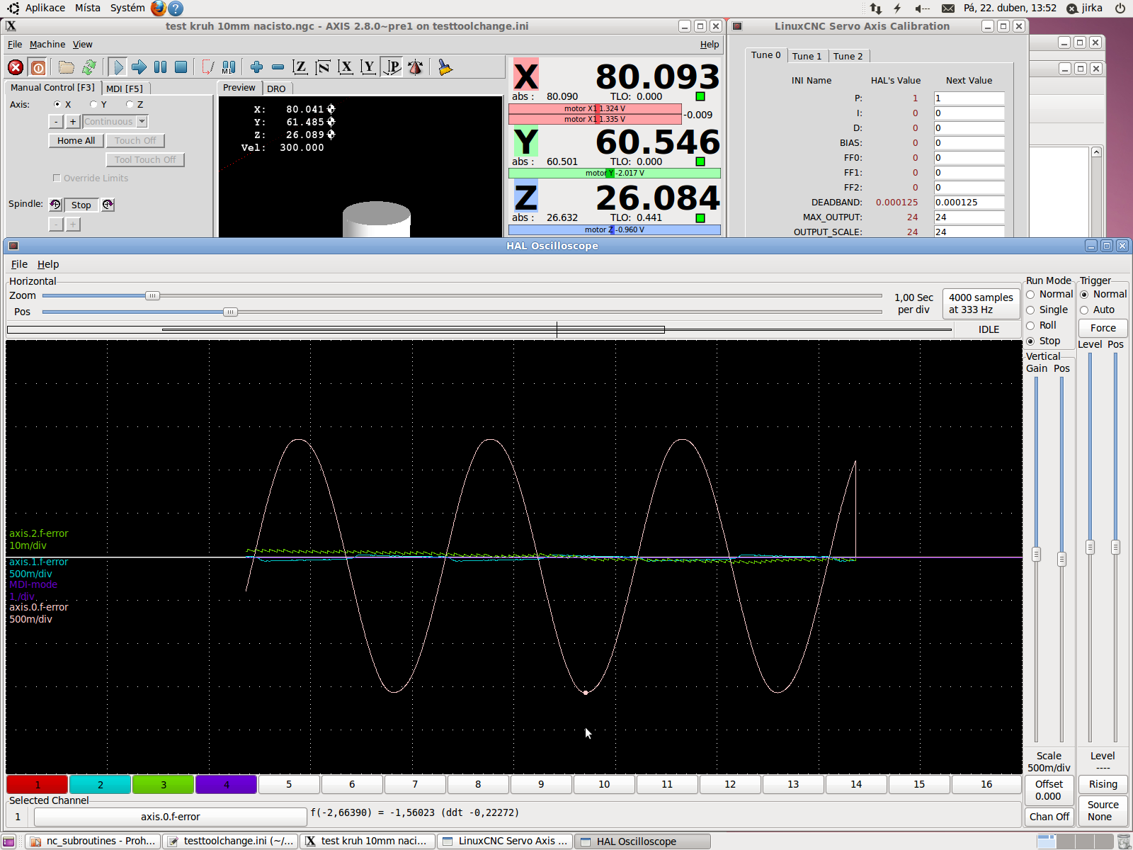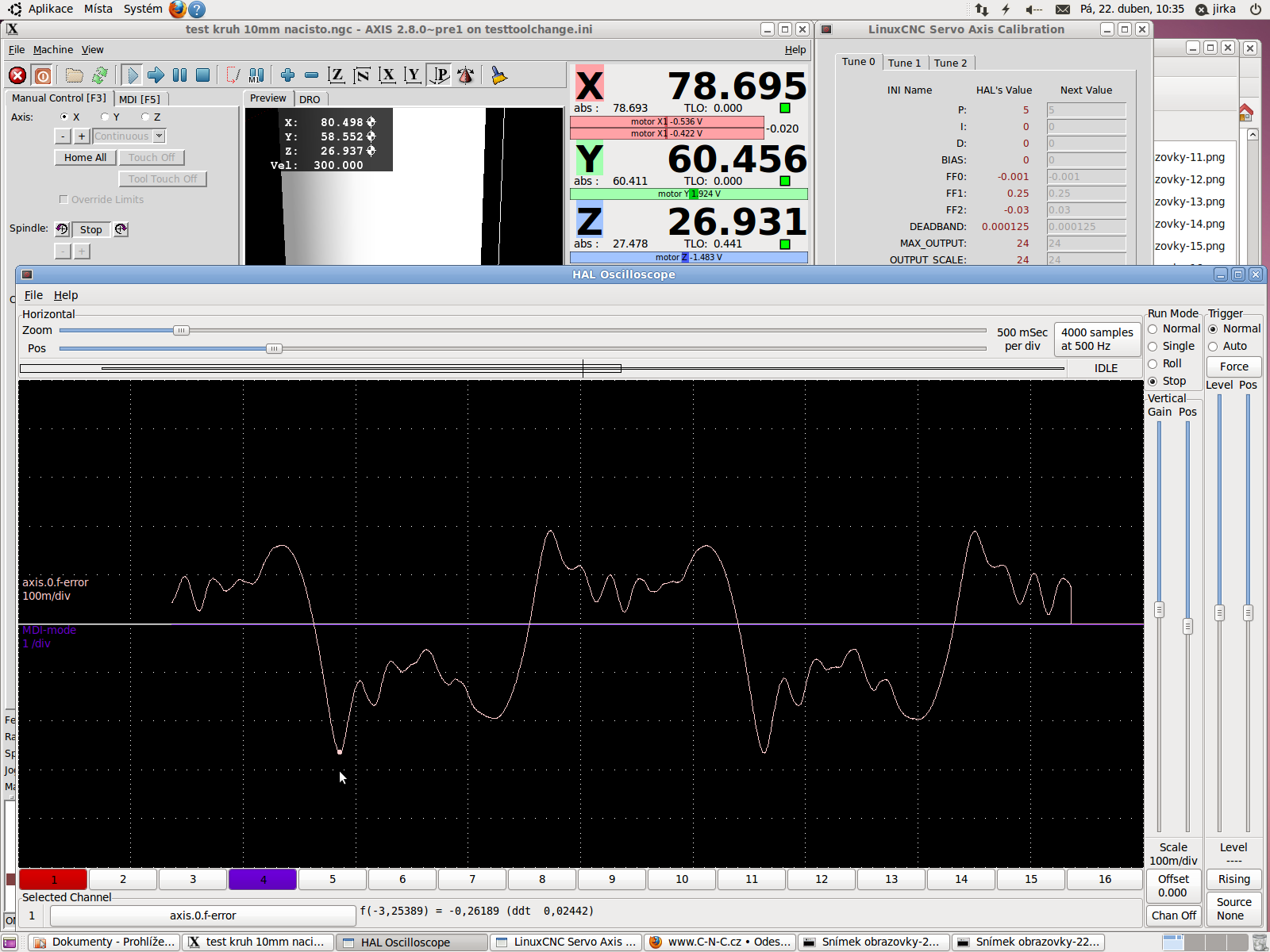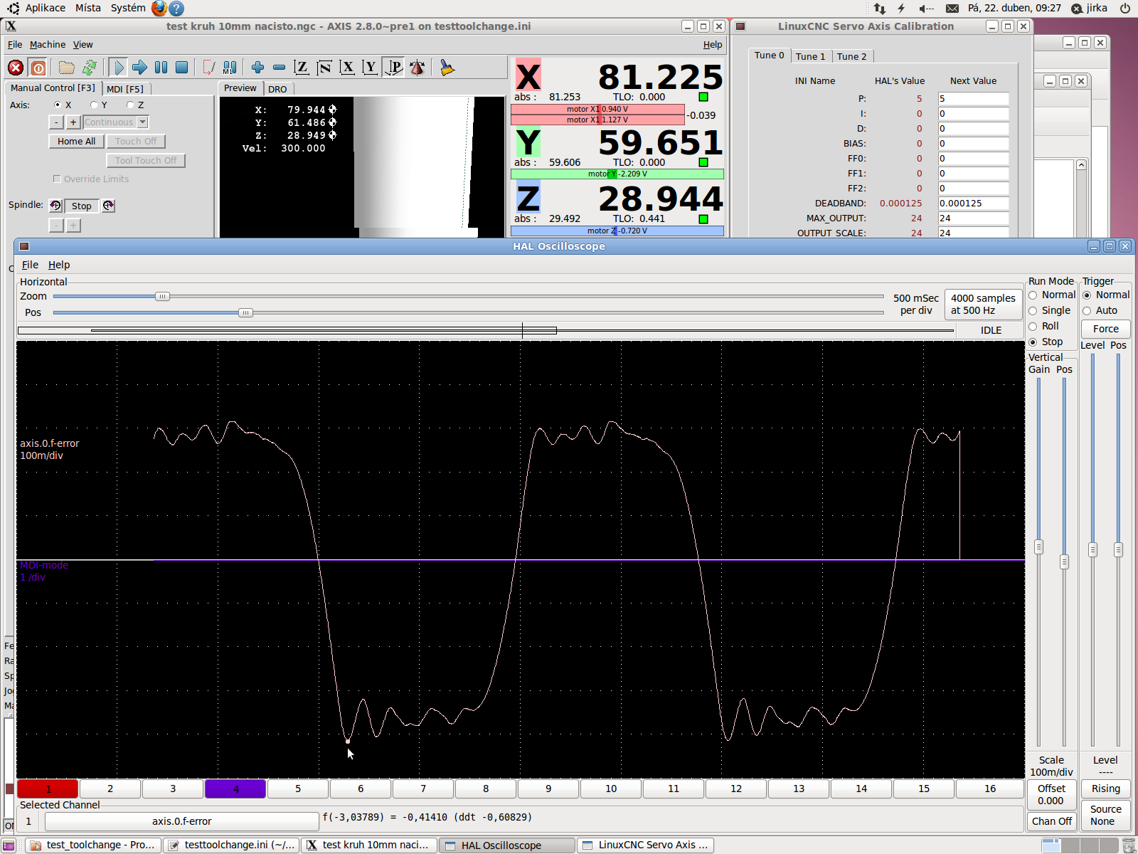 Na pracovní ploše v Linuxcnc jsem si to vyzvětšoval co to šlo a zdá se, že dráha nástroje se shoduje. Tam odchylka vidět není.