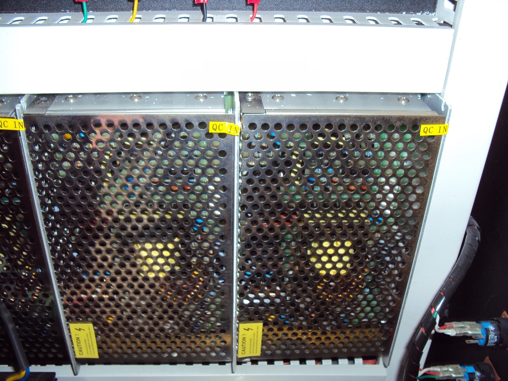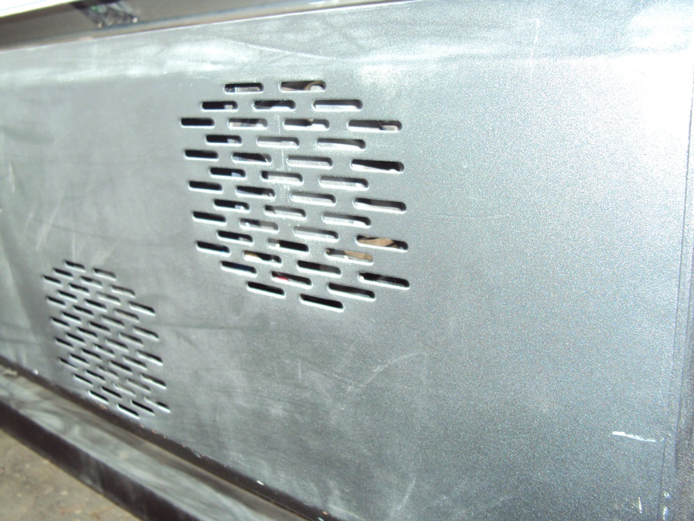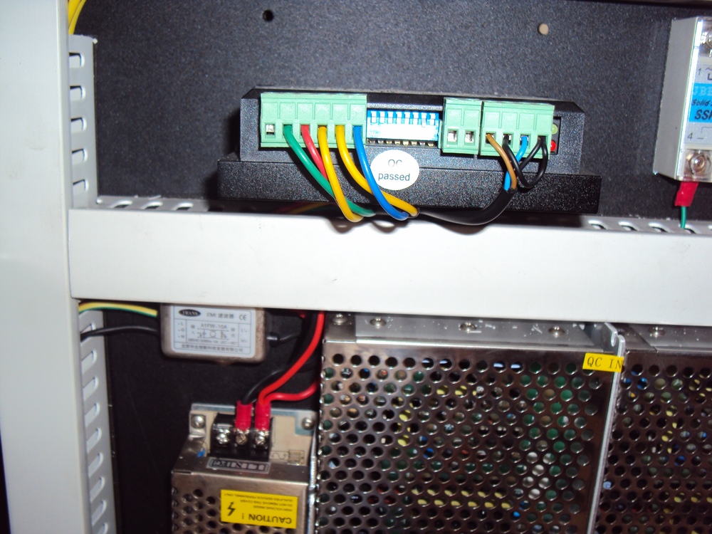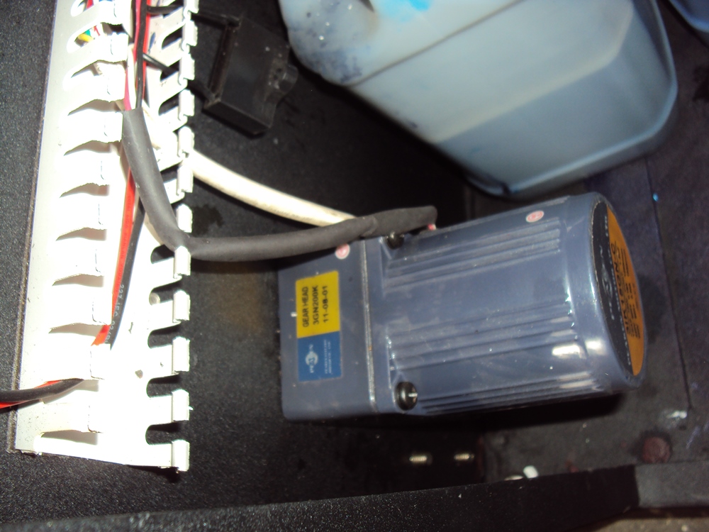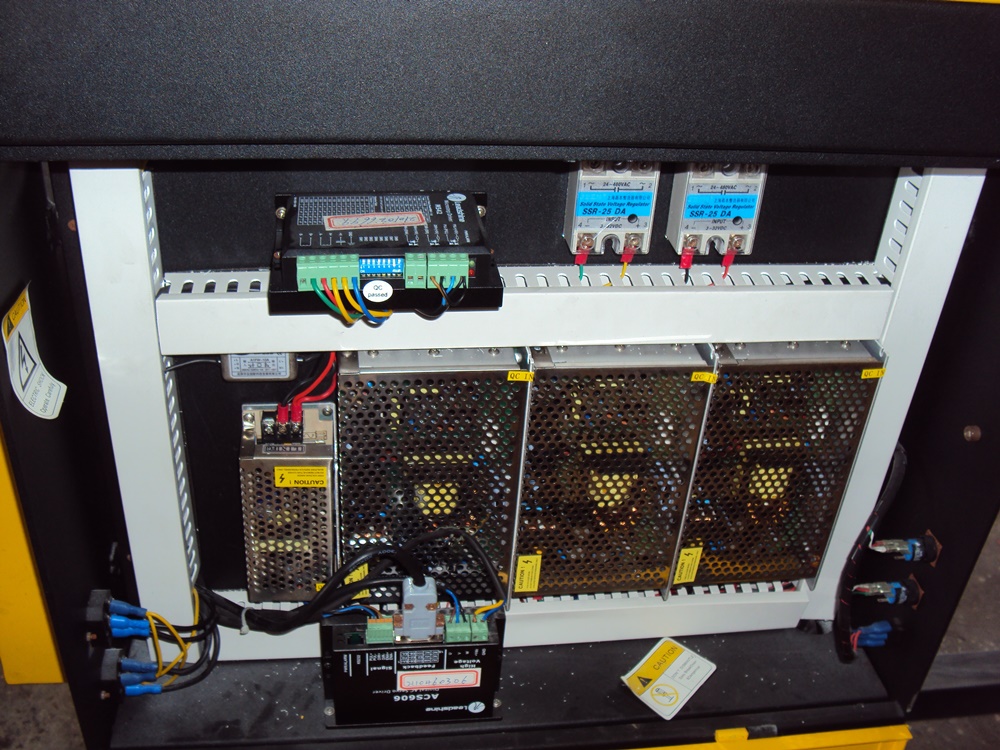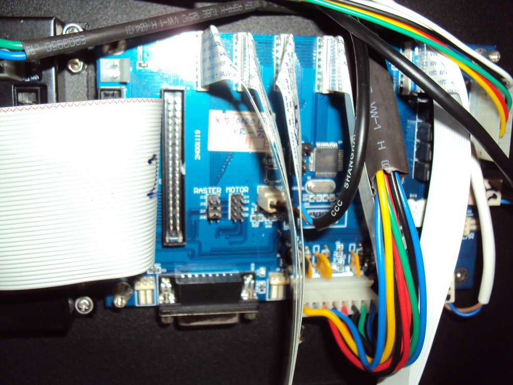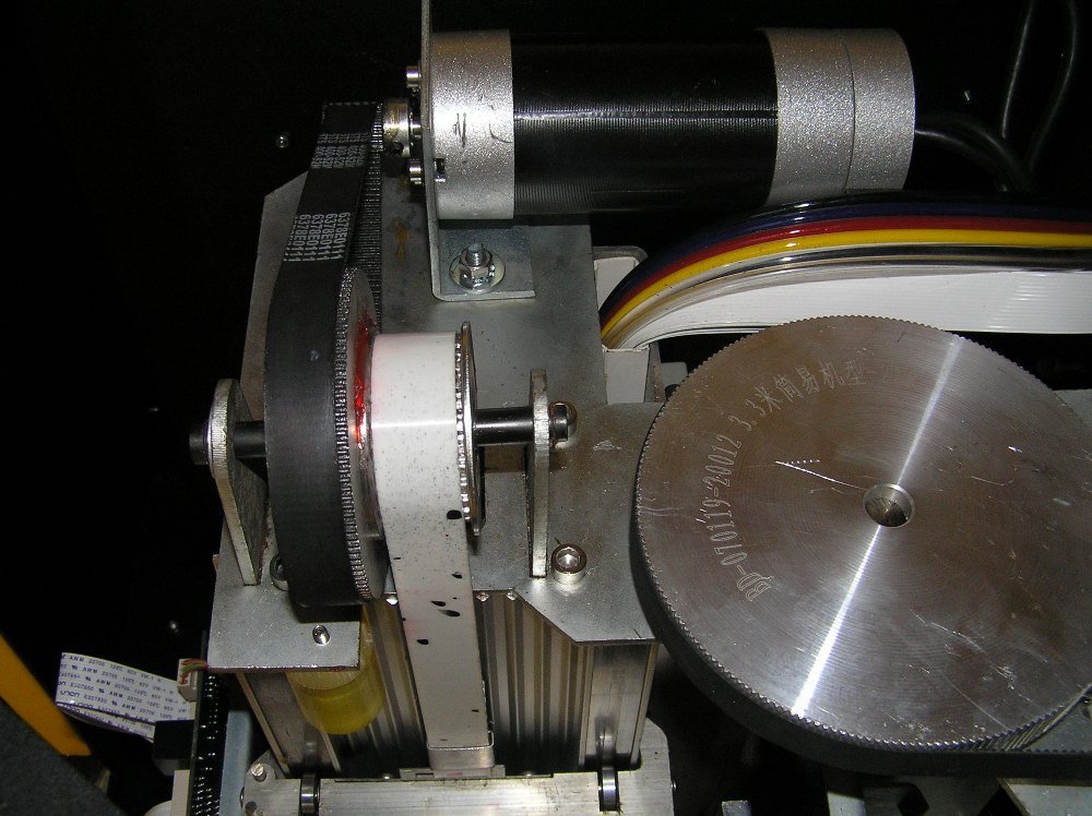 Tiskárna krátkou dobu tiskla, ale nepodařilo se nám na ní odstranit tisk světlejších průhu u velkých stejnobarevných ploch viz. foto banneru následně odešly tiskové hlavy a už jsme do tiskárny nechtěli investovat. Serva a ostatní komponenty jsou plně funkční. Tiskárna je na kolečkách je celkově dlouhá 3m a váží cca 400 kg dá se rozšroubovat na tři díly na bočních dílech je spustu dvířek ať je vše dostupné z každé strany. Po celé délce je tisk vyhřívaný a je tam cca 15 větráku pro vysoušení tisku. Tiskárna byla ovládaná pomoci USB kabelu. Jsou tam použity dva motory pro tisk a dva pro odvíjení a namotávání materiálu. Zdroje viz foto. Dále pak je tam spoustu čerpadel pro podávání inkoustu. Tiskárna je stará přes dva roky a investice do ní byla nějakých 8,5 tis. USD. Naše úvahy byly tiskárnu předělat na řezačku tapet a papíru, ale z časových důvodu k tomu nedošlo.