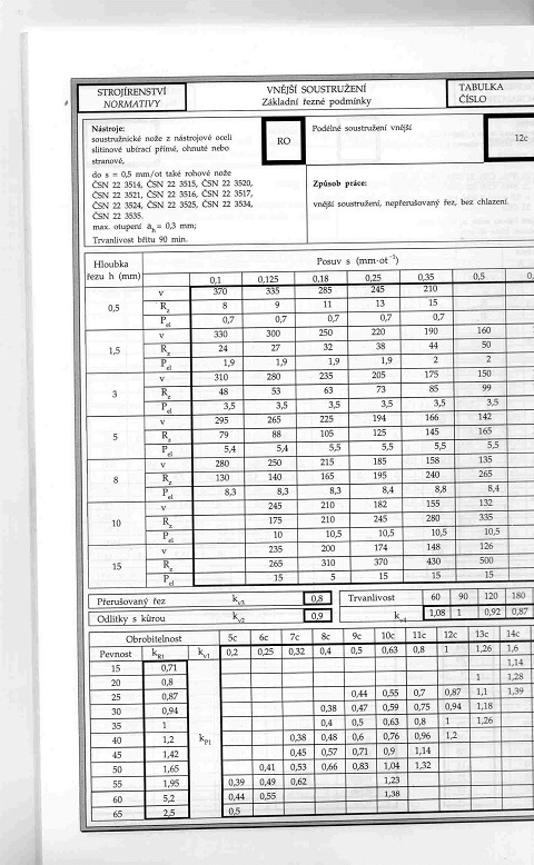 Zde jsou optimální řezné podmínky pro těžké neželezné kovy pro RO. Pro SK ( K10) jsou řezné rychlosti asi 2x vyšší. Vše je v tabulce včetně nožů.Astrid píše:Našel by se zde dobrodinec ochotný poradit zelenáči s základy obrábění?