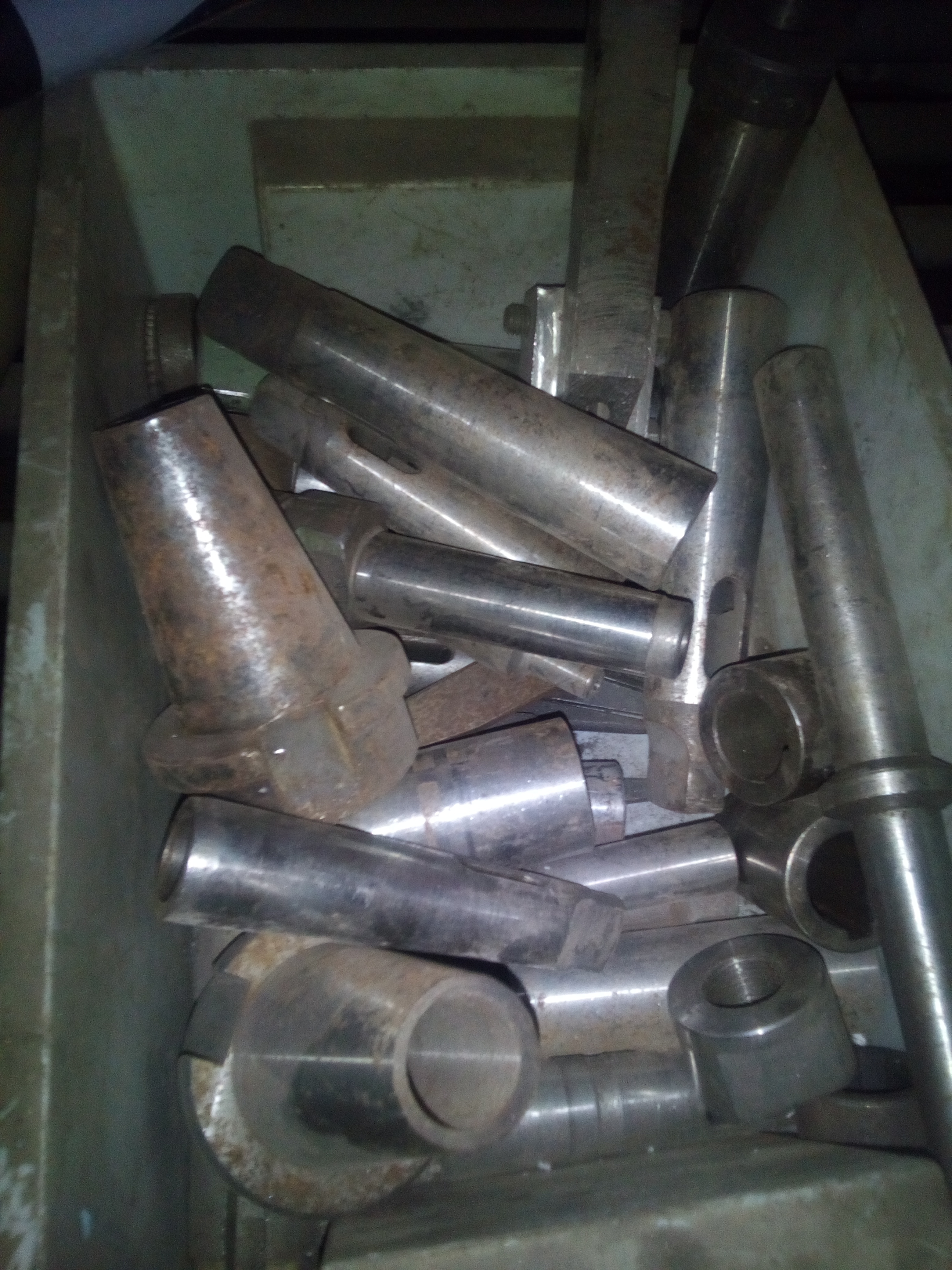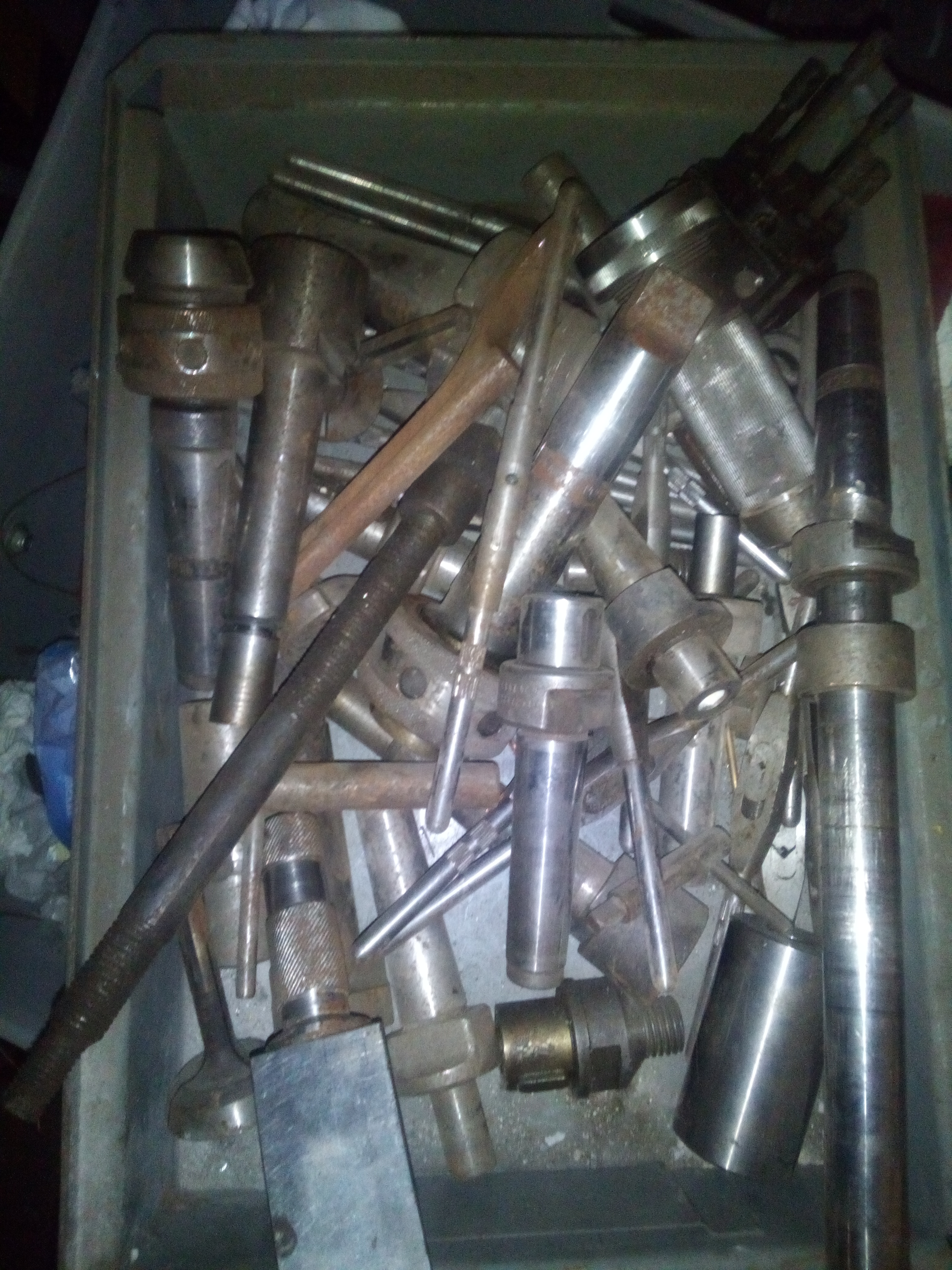 vzal bych ty frézovací trny z poslední fotky, hádám kužel MK4, včetně hlaviček na kleštiny a také ty frézovací trny a hlavičky z té plechové bedny.