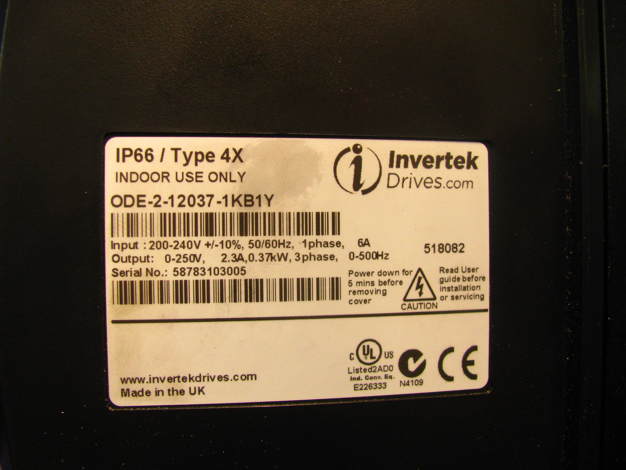 Teď jsem původní jednofázový motor 0,37 kW nahradil novým 3F s frekvenčním měničem. Narazil jsem na pěkný nový Invertek za dobrou cenu.