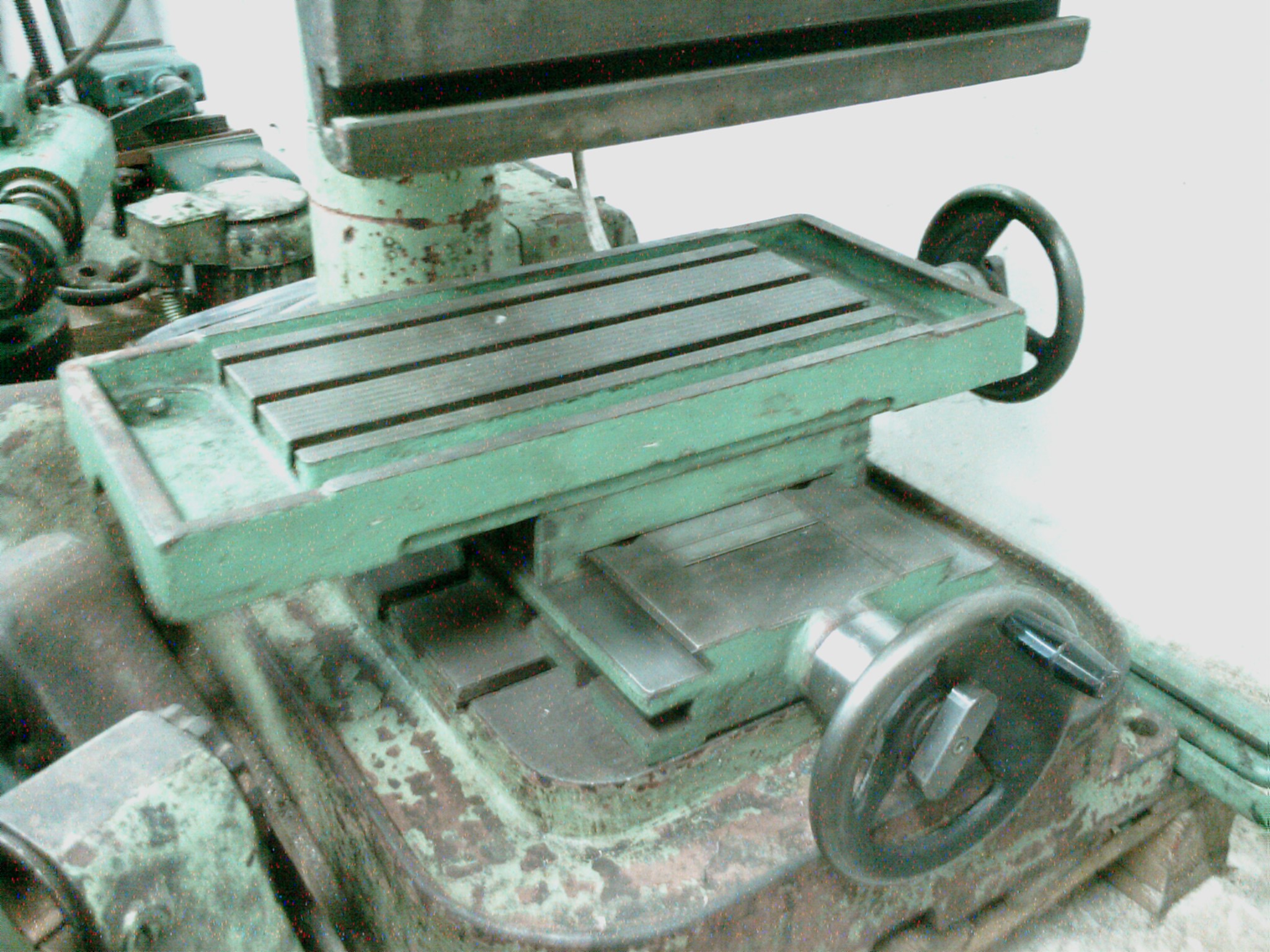 Šroub má stoupání 4mm a dílek je 0,05mm. Deska s drážkami pro upnutí obrobku je 400x173 a drážky jsou 12.