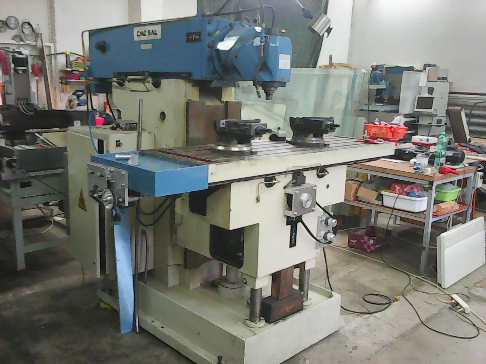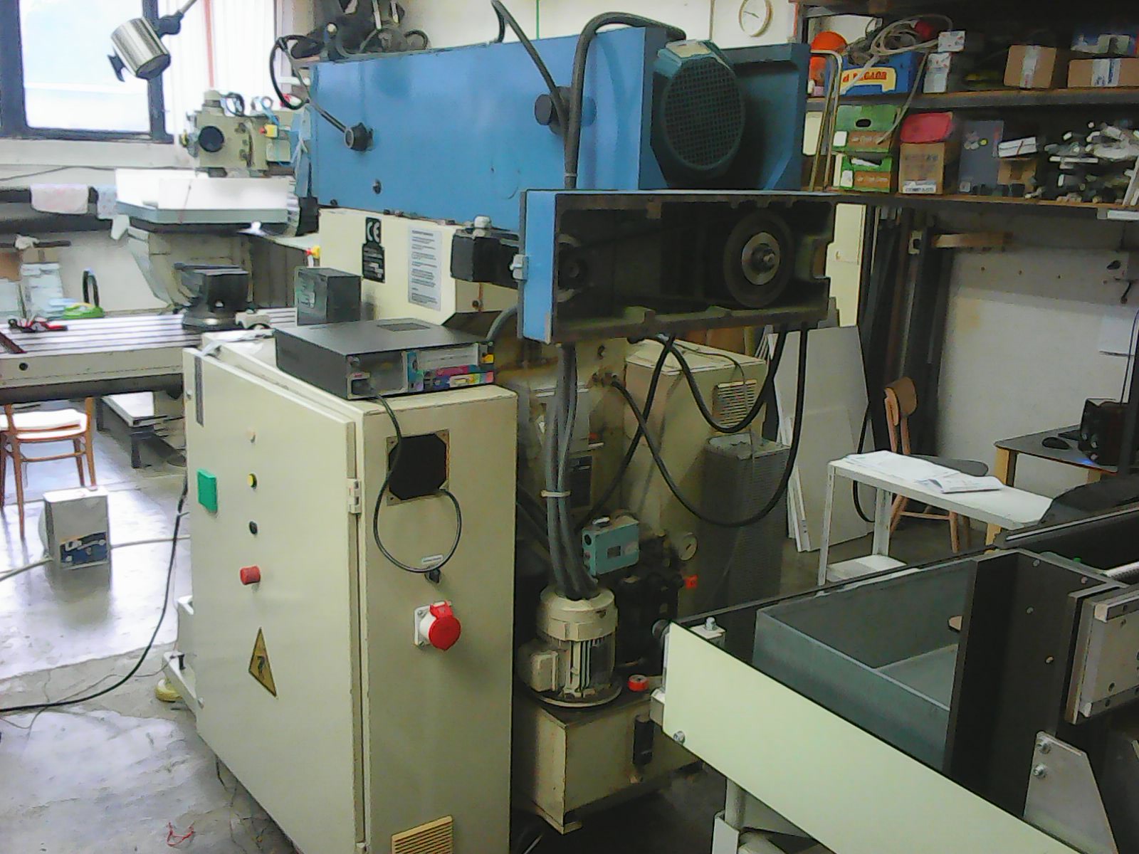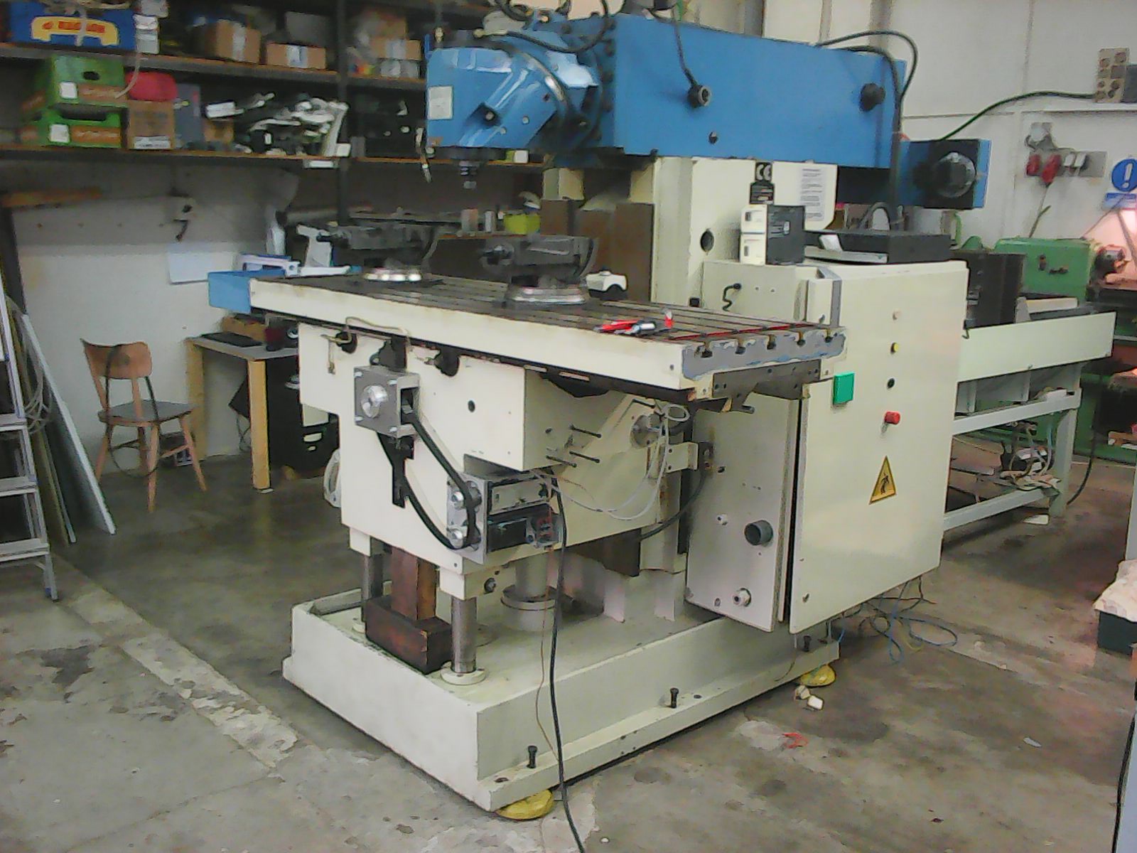 Zjistil jsem že jak nám přibývá práce ještě jedna "dospělá" frézka by se nám hodila.Tahle navíc vypadá v dobrém stavu,má už vedení obložené turcitem (nebo co to je...),dostali jsme k ní zrepasovaný šroub na X,má dobrý měnič na pohon vřetene a podobně.