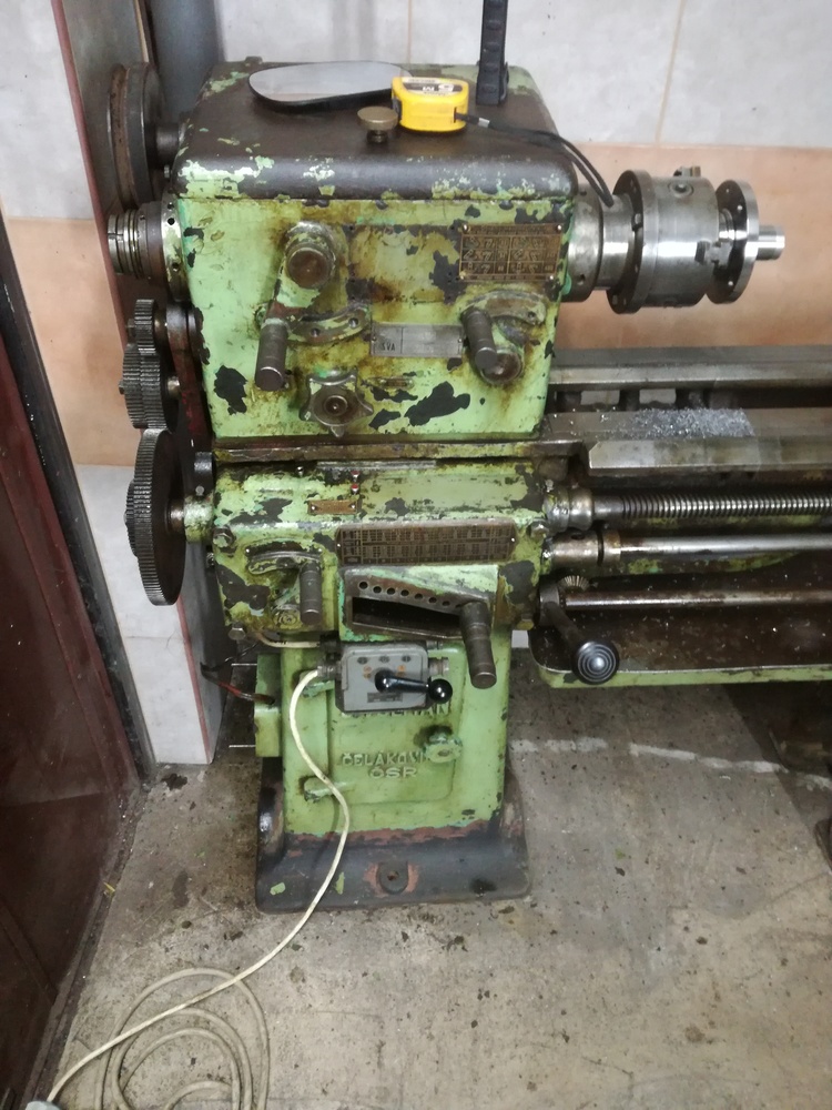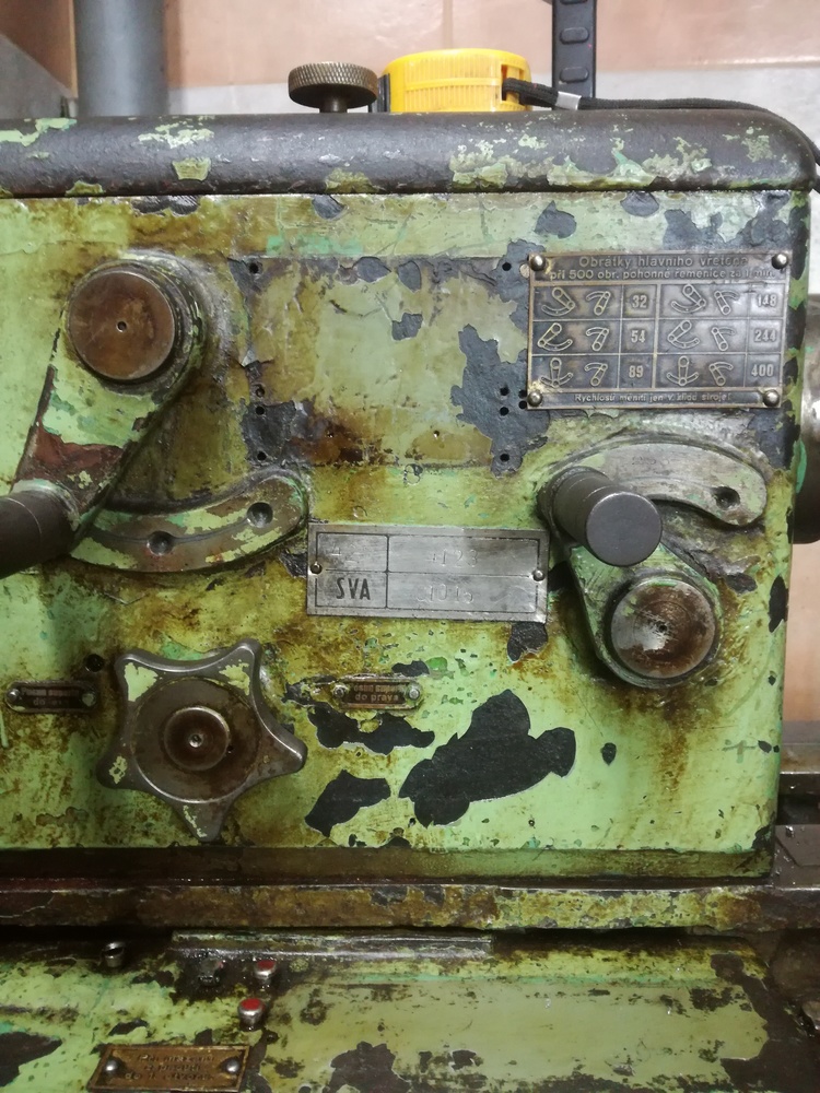 Dobrý den prosím o radu se soustruhem konečně sem se rozhoupal ke koupi soustruhu splněný sen po přečtení vsech možných diskuzi nejvice tady sem koupil místo promy spa 700 z kraje týdne volmana pro mě slušná velikost i váha starý ale funkční podle cedulky nemůžu nic najit tenhle ma i prostredni nohu a třetí kulatinu dole tim se to přes páku pousti vreteno mam k tomu i kola na ty převody už sem s tim laboroval ale rychlost posuvu me přijde velká zná nebo má někdo tenhle typ je tam jinej motor určitě jestli ma špatný otáčky?dělá mi to spatnej povrch není hladkej ani pomalu ručně Soustruh naposled vruce na ucnaku jestli spatnej nůž otáčky? posuv určitě de to moc rychle diky moc za každou radu mam foto tak na to prosim juknete díky snad píší do dobrého vlákna dyztak se nezlobte jestli sem mimo píšu poprvé