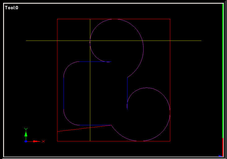 modra - chtel bych aby freza rizla tohle po "korekci", oblouk je prumer frezy
