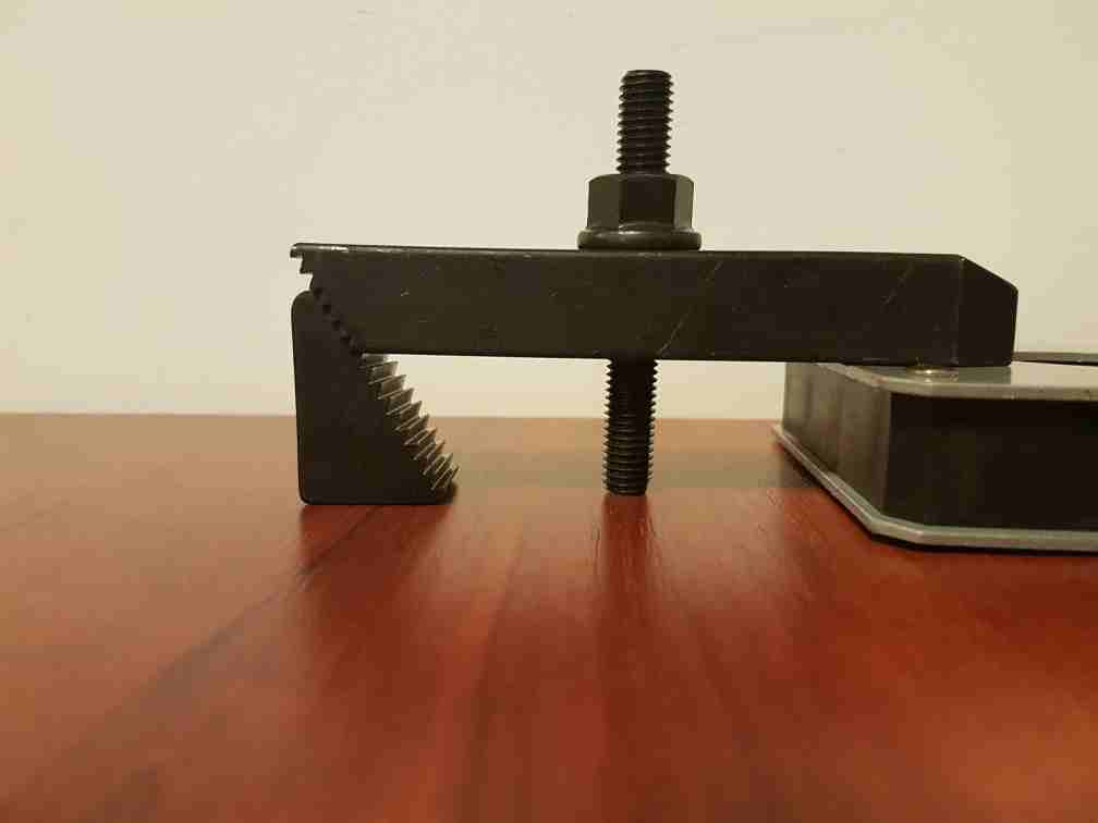 No podla mňa by mala byť podpora mierne vyššia ako výrobok ,t.j. presne opačne, predsa tá upínka tlačí výrobok o stôl...