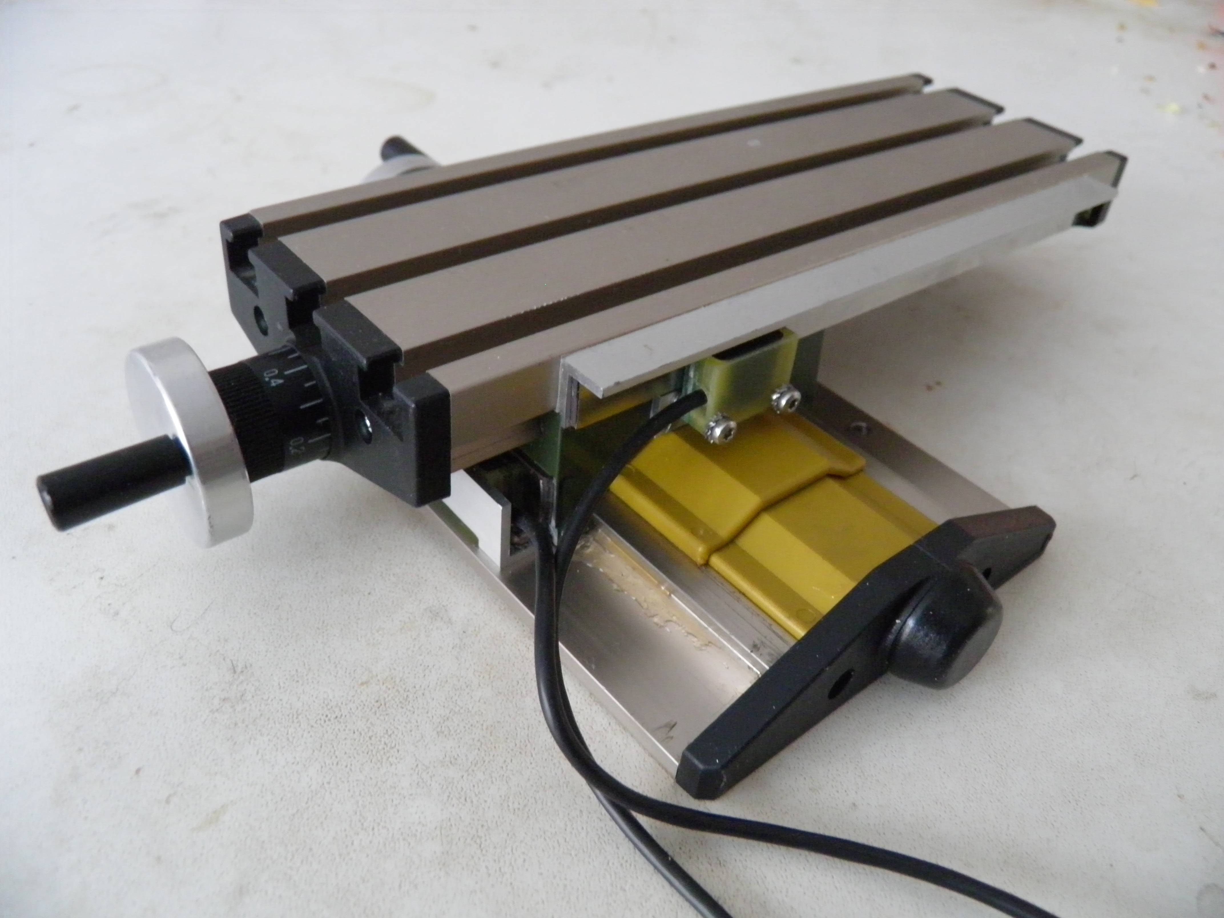 křížový stůl mini frézky PROXXONN MF-70 (na obrázku jsou senzory starého typu)