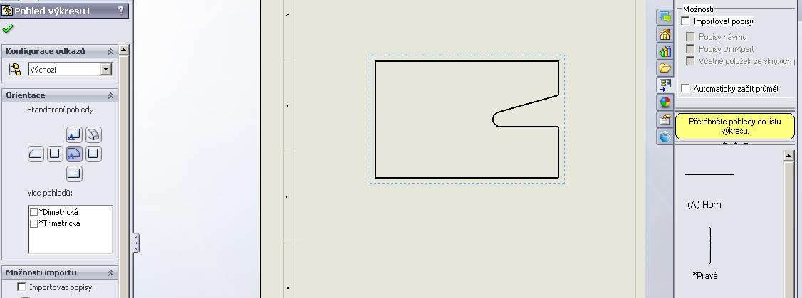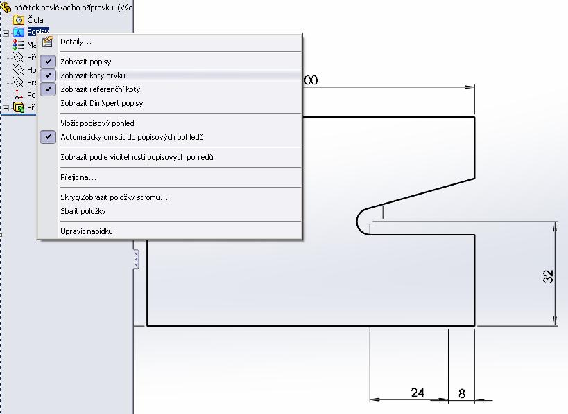 SolidWorks přenos kot do výkresu