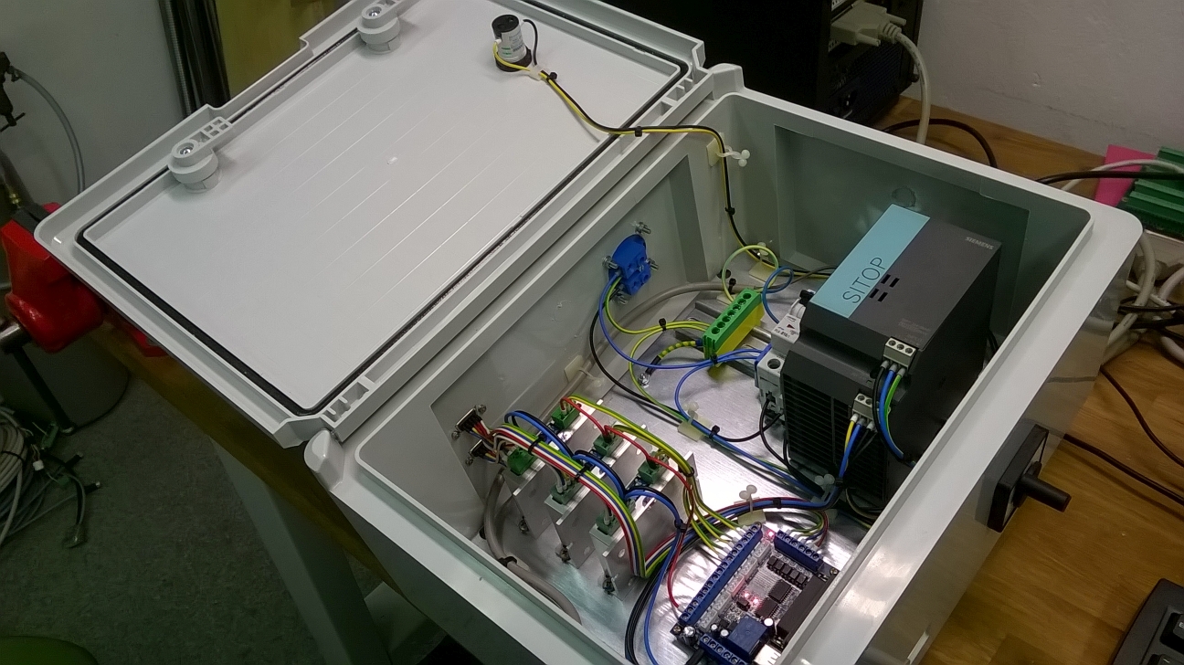 Já mám v jedné skříni komplet vše - silovou část, řídící elektroniku + pc, dále monitor a ovládací tlačítka na dveřích skříně. Ta má rozměr 70x90x25 cm, je plechová a sehnal jsem ji na Aukru za 600,- Dají se tam podobné kousky najít, je třeba mít trochu kliku a pravidelněji to sledovat. Asi před třemi týdny jsem si dovezl podobnou skříň (80x95x30) i se svorkovnicemi za 700 téměř fungl novou. Sice jsem pro ni musel jet až do Chebu, ale vyplatilo se.